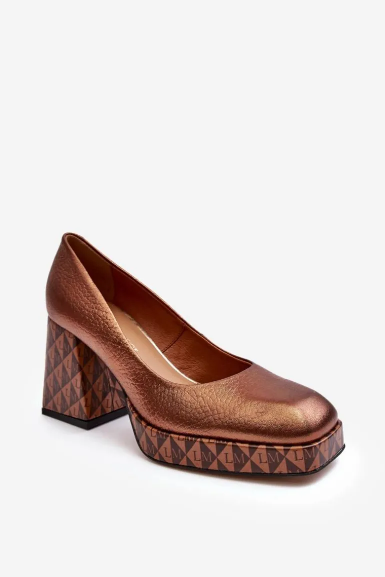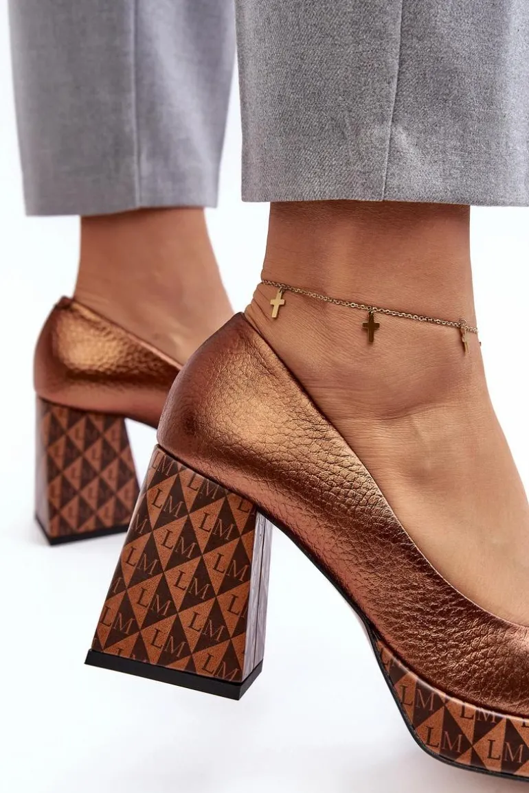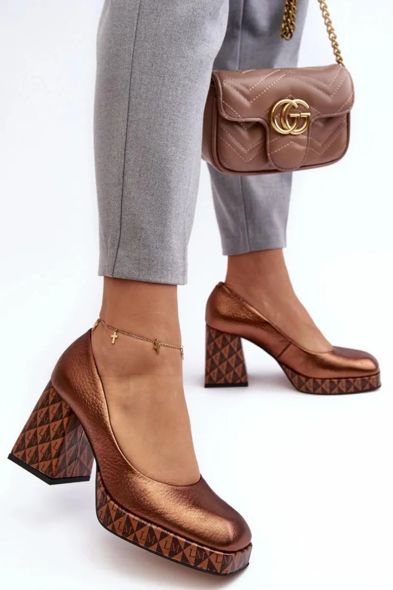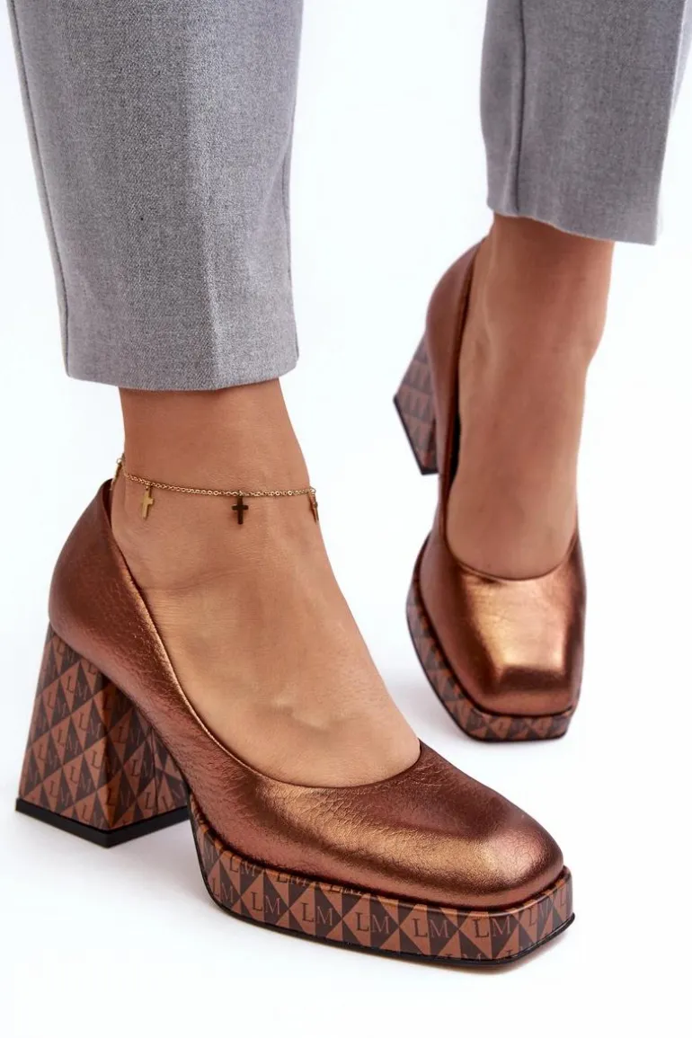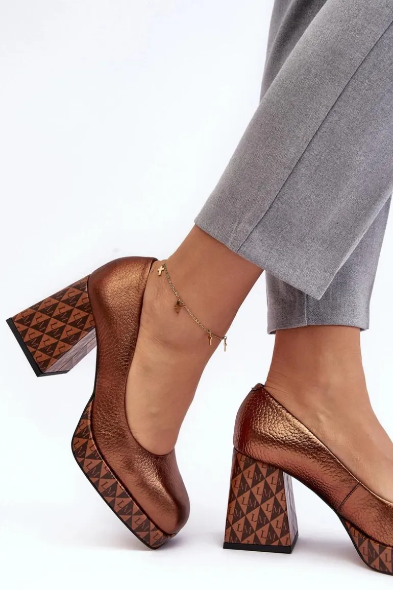 Damskie czółenka zostały wykonane z wysokiej jakości skóry naturalnej. Osadzone na platformie i obcasie w postaci słupka. Noski w kwadrat. Czółenka posiadają usztywniany zapiętek. Miękka, skórzana wkładka zadba o komfort podczas użytkowania. Przy wyborze rozmiaru prosimy sugerować się tabelą rozmiarów.