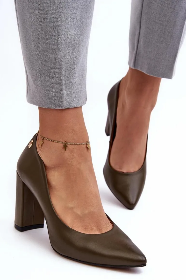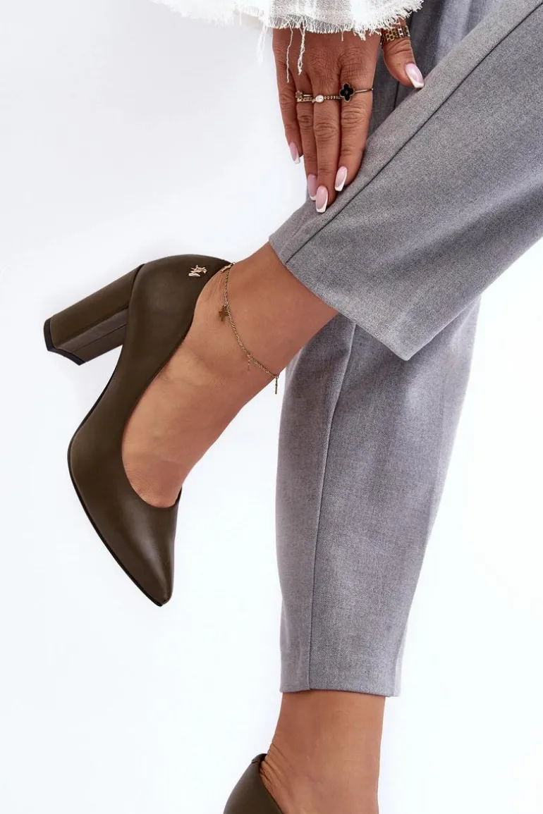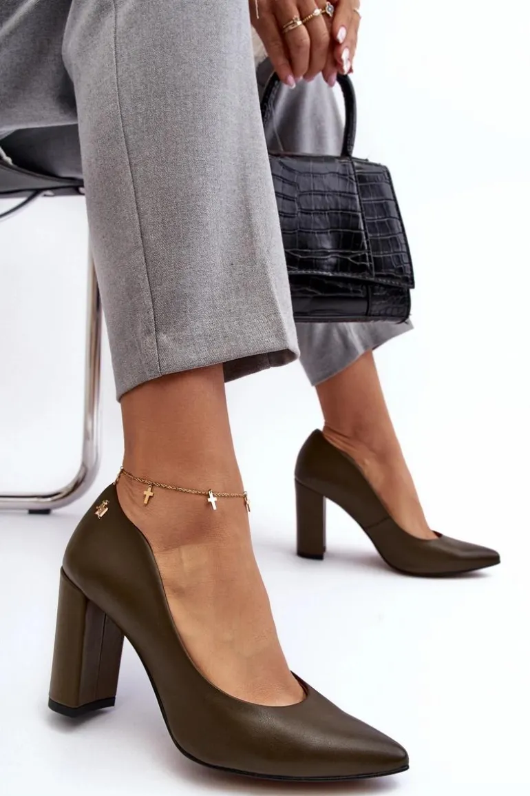 Eleganckie czółenka damskie wykonane ze skóry naturalnej z dbałością o każdy detal. Model ten osadzony jest na obcasie w postaci słupka. Noski w szpic optycznie wysmuklą nogi. Zapiętek jest usztywniony. Miękka, skórzana wkładka zapewni komfort podczas użytkowania. Przy wyborze rozmiaru prosimy sugerować się tabelą rozmiarów.