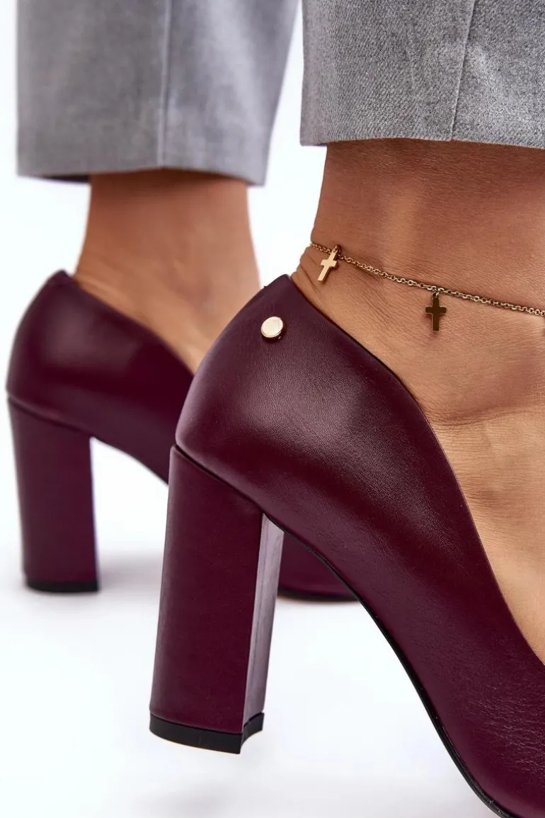 Eleganckie czółenka damskie wykonane ze skóry naturalnej z dbałością o każdy detal. Model ten osadzony jest na obcasie w postaci słupka. Noski w szpic optycznie wysmuklą nogi. Zapiętek jest usztywniony. Miękka, skórzana wkładka zapewni komfort podczas użytkowania. Przy wyborze rozmiaru prosimy sugerować się tabelą rozmiarów.