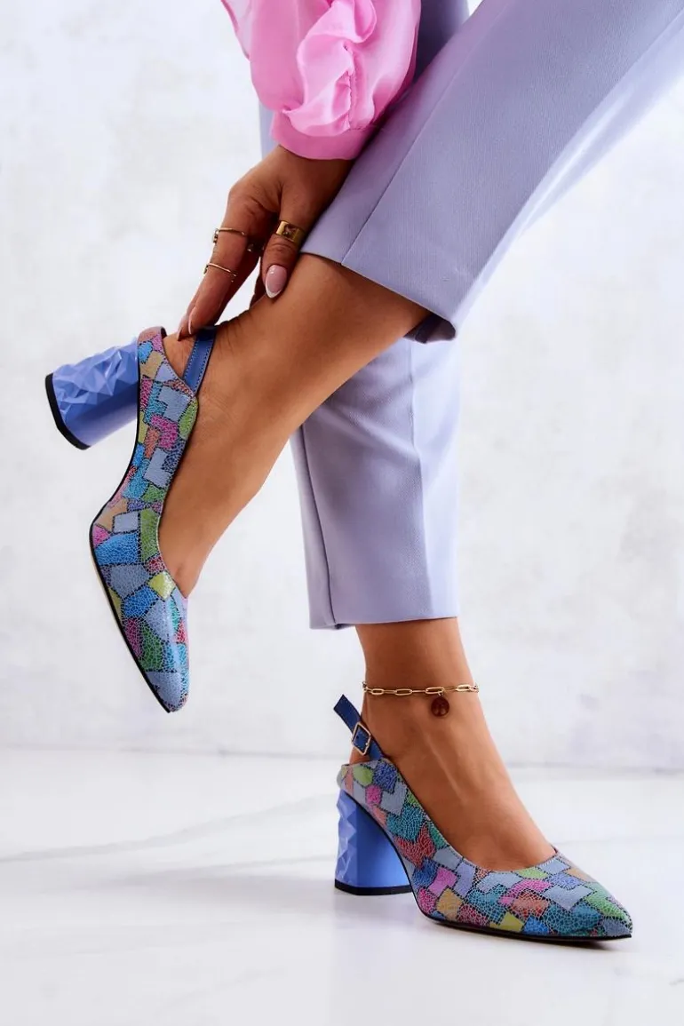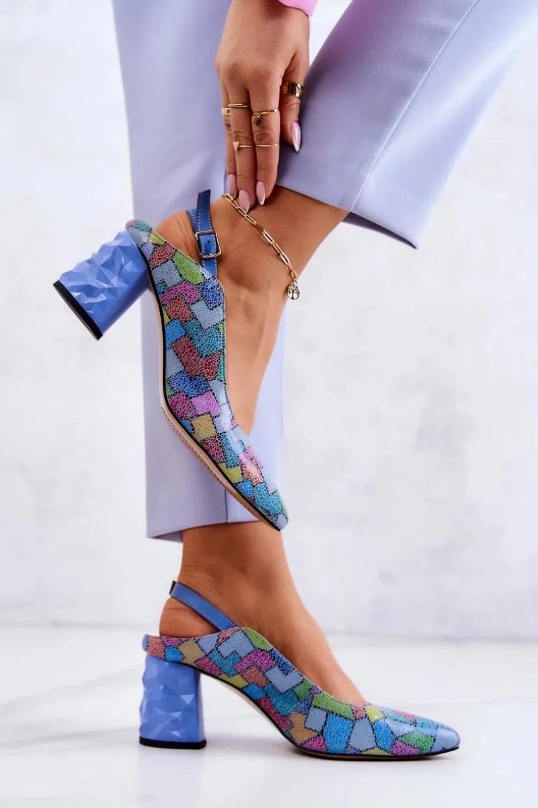 Skórzane Czółenka Na Słupku Maciejka 05427-06 Multikolor