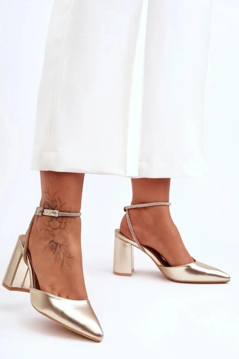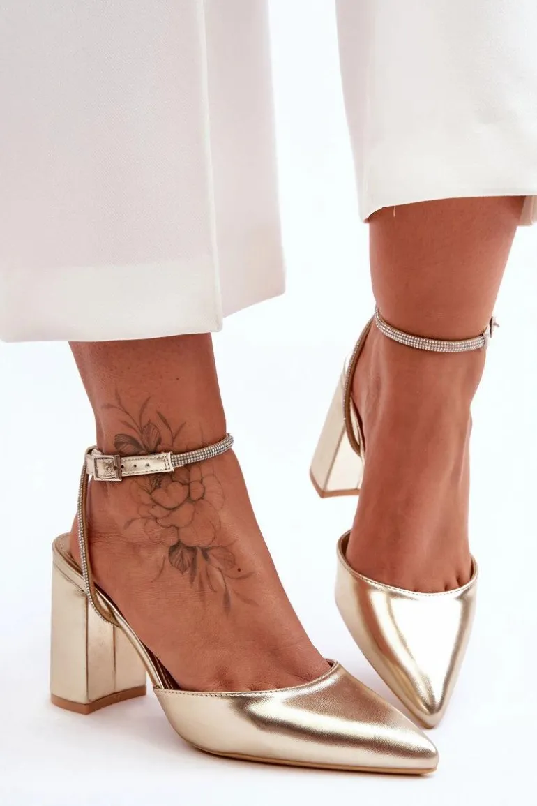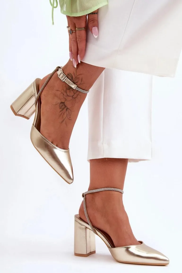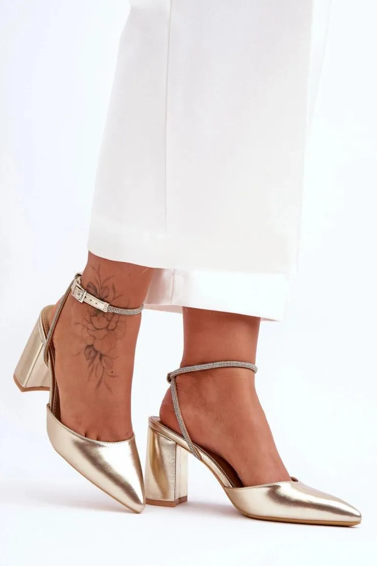 Eleganckie czółenka zostały wykonane z eko skóry. Osadzono je na obcasie w postaci stabilnego słupka. Miękka, eko skórzana wkładka zapewni komfortowe użytkowanie. Charakterystyczny nosek w szpic oraz zdobiony dżetami imitującymi cyrkonie pasek wyróżnia ten model na tle innych. Czółenka posiadają zapięcie na sprzączkę. Ten model z pewnością wykorzystasz na wiele okazji! Przy wyborze rozmiaru prosimy sugerować się tabelą rozmiarów.