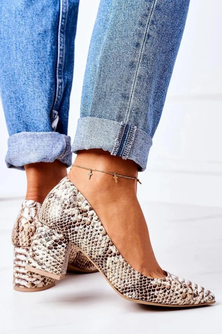 Skórzane Czółenka Z Wężowym Wzorem Lewski Shoes 2801 Złote