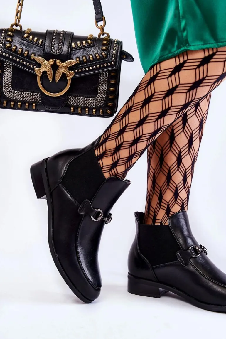 Botki na płaskiej podeszwie z szerokim obcasem w stylu sztybletów. Posiadają wysoką, sięgającą ponad kostkę cholewkę. Wykonane ze skóry ekologicznej. Posiadają dodatkową, elastyczną wstawkę, dzięki której cholewka świetnie dopasuje się do tęgości nogi. Buty nie zostały ocieplone. Botki doskonale sprawdzą się w jesiennych stylizacjach. Przy wyborze rozmiaru prosimy kierować się tabelą rozmiarów