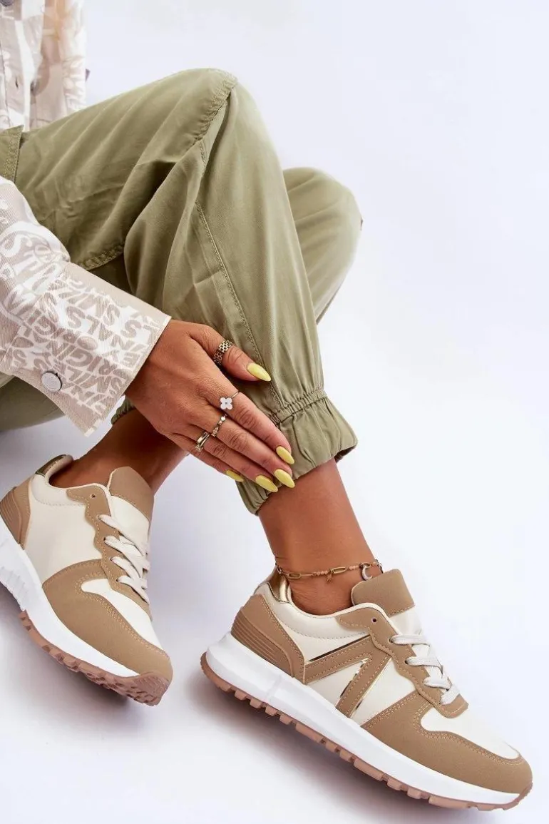 Damskie, modne buty sportowe zostały wykonane z eko skóry. Buty osadzono na platformie i podeszwie z wypustkami. Model ten jest klasycznie sznurowany i posiada zaokrąglony nosek. Idealne do każdej stylizacji! Przy wyborze rozmiaru prosimy kierować się tabelą rozmiarów.