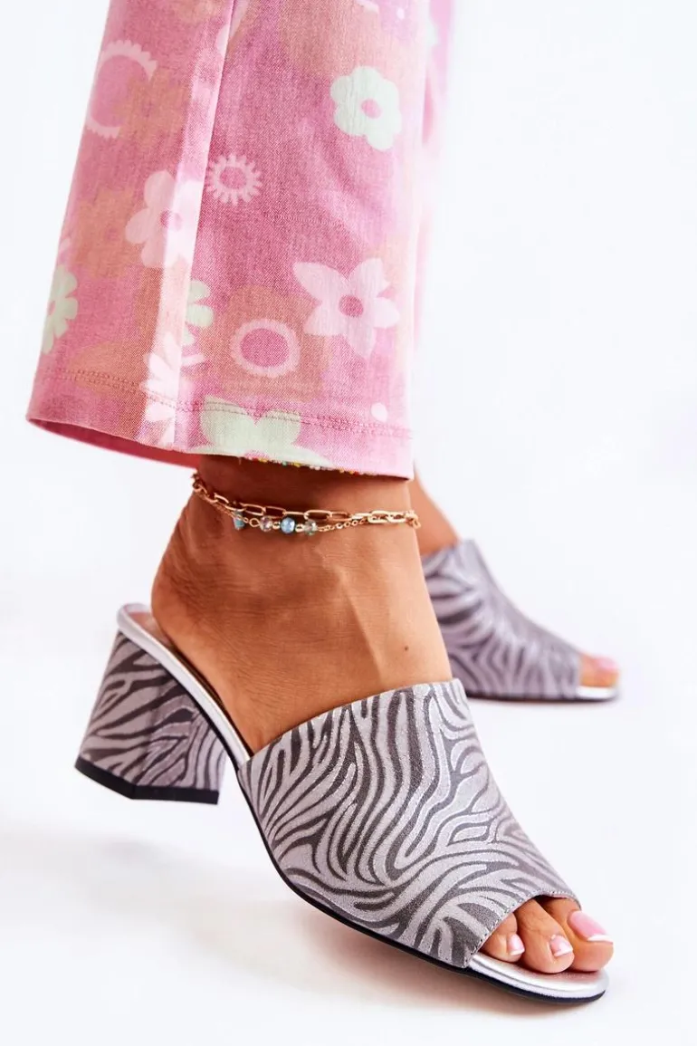 Modne, a zarazem wygodne klapki damskie zostały osadzone na obcasie w postaci klocka. Cholewka wykonana z naturalnej, zamszowej skóry. Nosek odkryty, zaokrąglony. Miękka wkładka została wykonana z naturalnej skóry. Model klasyczny, wsuwany. Świetnie sprawdzą się do wielu stylizacji. Idealnie dopasują się do tęgości nogi, dzięki skórzanej wyściółce. Spraw sobie radość kupując nową parę butów! Przy wyborze rozmiaru prosimy sugerować się tabelą rozmiarów.