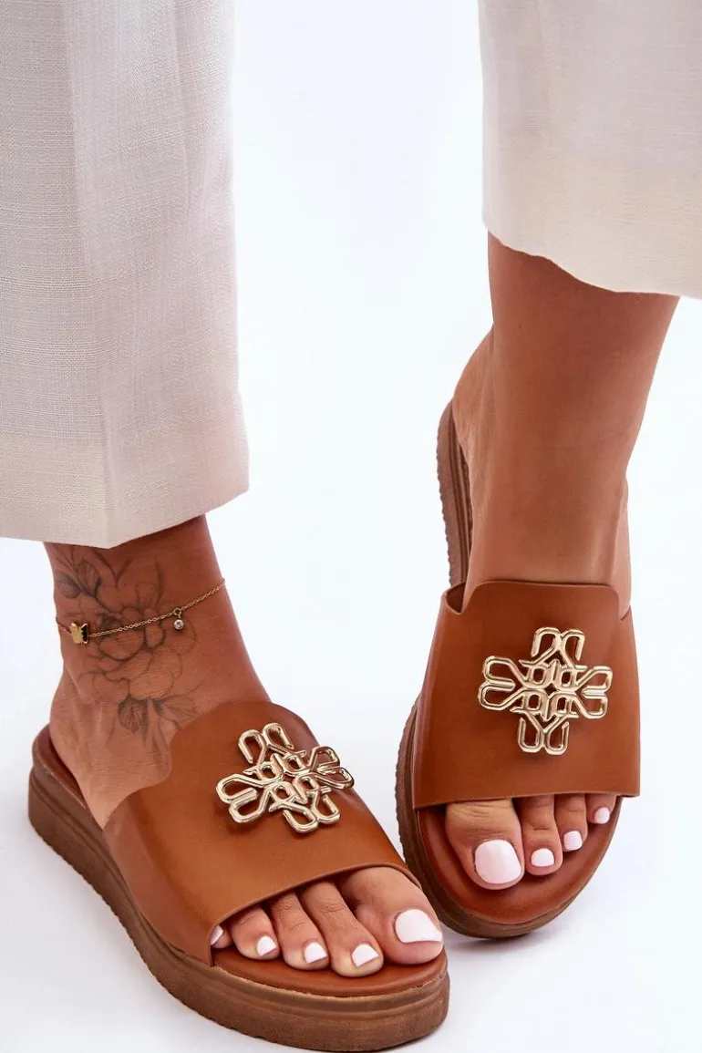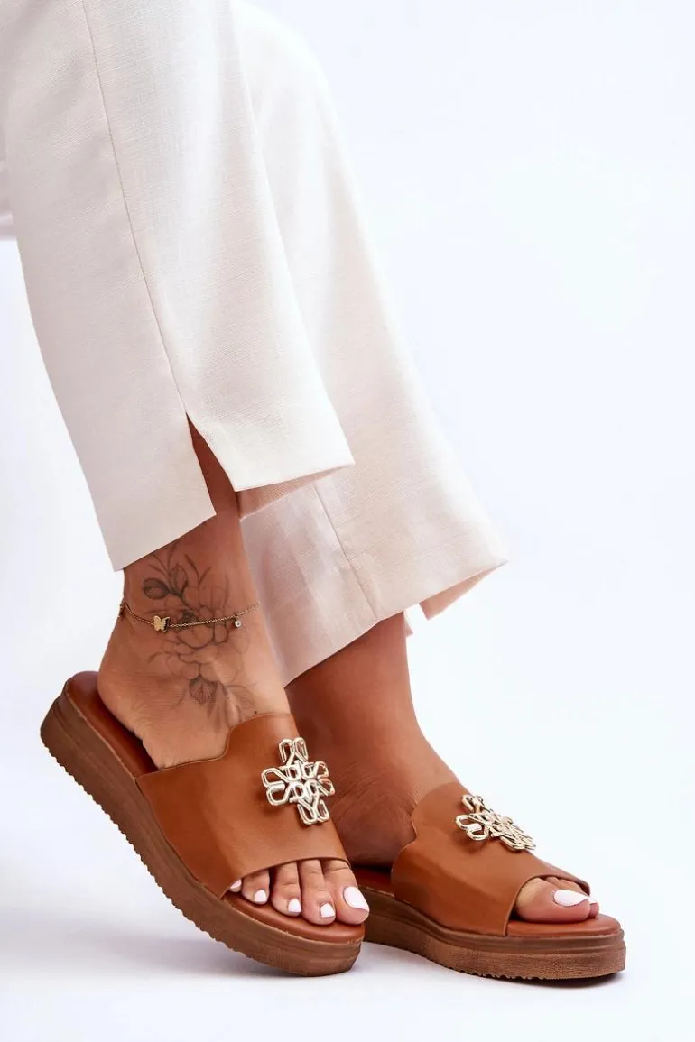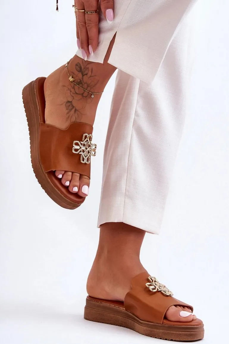 Klasyczne, damskie klapki zostały wykonane z eko skóry. Model ten posiada ozdobę wykonaną z tworzywa sztucznego. Klapki osadzono na grubej platformie. Wkładka jest bardzo miękka i wygodna w użytkowaniu. Ten model powinien znaleźć się właśnie w Twojej garderobie! Przy wyborze rozmiaru prosimy sugerować się tabelą rozmiarów.