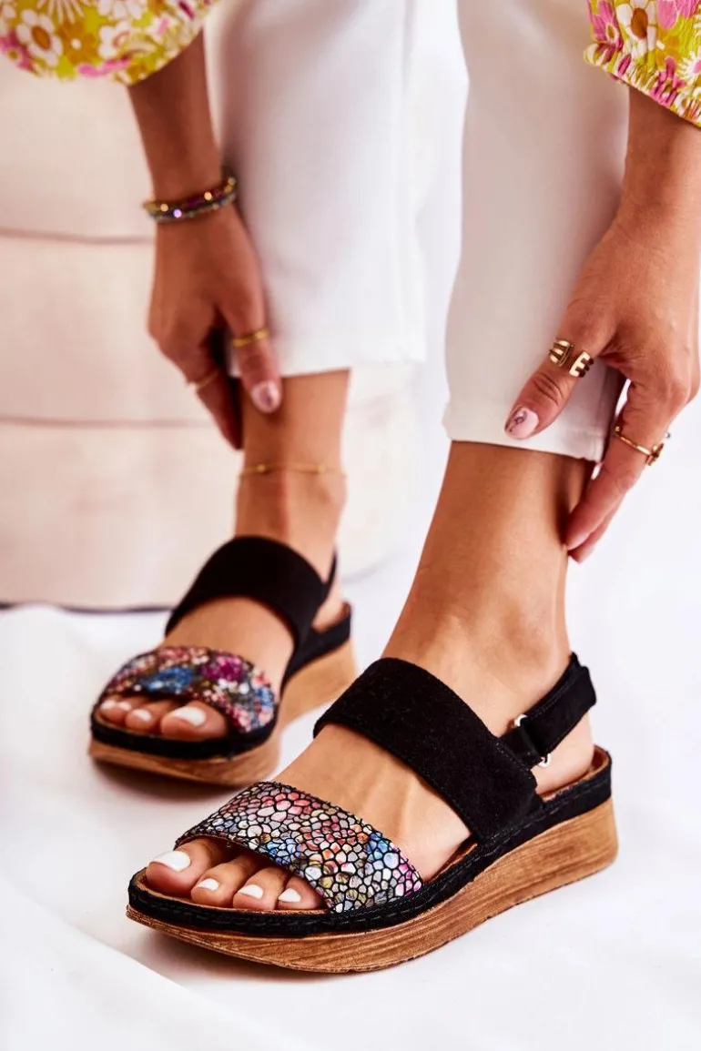 Wyjątkowe sandały na platformie od polskiej marki Maciejka. Buty zostały wykonane z wysokiej jakości naturalnego zamszu oraz naturalnej skóry. Miękka, skórzana wkładka to gwarancja wygody. Posiada delikatną perforację. Zapinane na rzep. Nosek odkryty, zaokrąglony. Paseczki świetnie przytrzymują nogę przed przesuwaniem się. Ten wspaniały model powinien idealnie sprawdzi się na co dzień. Koniecznie także sprawdź całą naszą kolekcję butów marki Maciejka. Przy wyborze rozmiaru prosimy sugerować się tabelą rozmiarów.