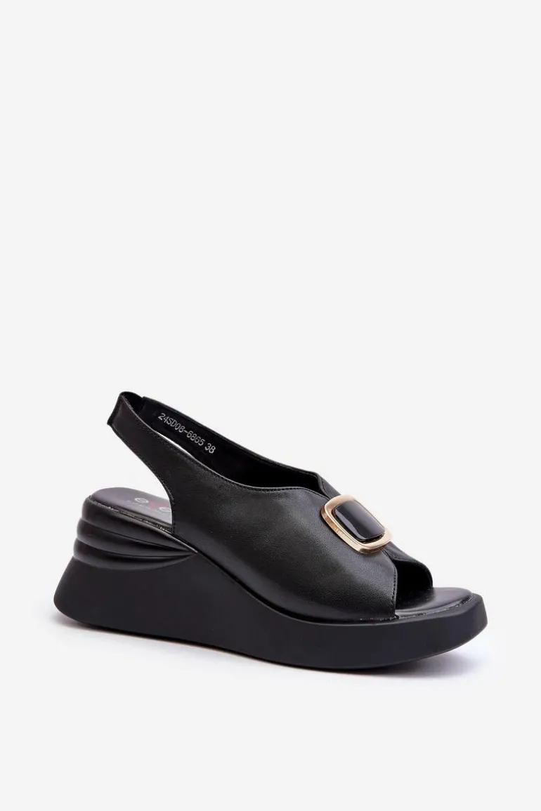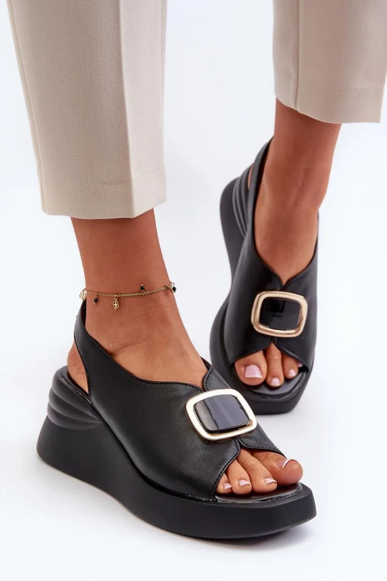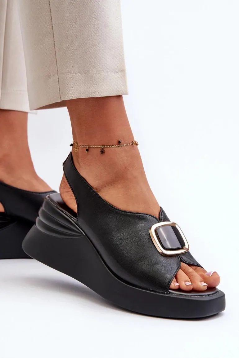 Modne sandały damskie na koturnie to połączenie stylu i wygody. Wykonane ze skóry naturalnej, prezentują elegancki wygląd, który doskonale komponuje się z różnymi letnimi stylizacjami. Z tyłu znajduje się gumka, która zapewnia lepsze dopasowanie do stopy i dodatkowy komfort podczas noszenia. To idealny wybór dla kobiet ceniących zarówno modny design, jak i wygodę. Przy wyborze rozmiaru prosimy sugerować się tabelą rozmiarów.