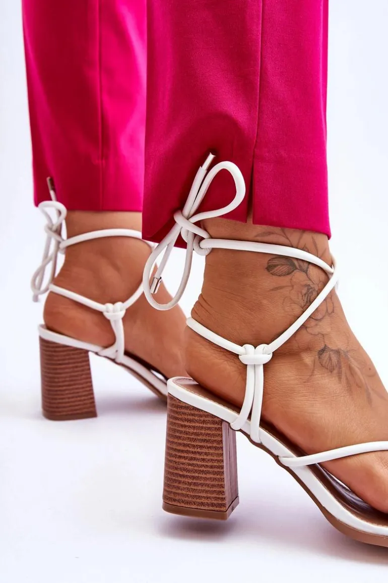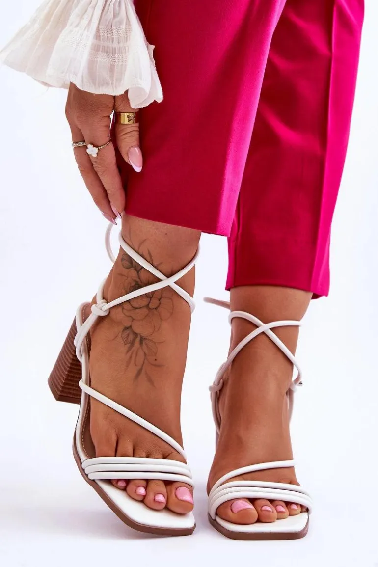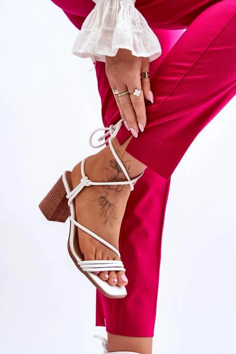 Niezwykłe sandałki na obcasie w postaci słupka świetnie sprawdzą się podczas upalnych dni. Idealnie będą prezentować się zarówno ze spodniami, jak i sukienkami. Buty zostały wykonane z eko skóry. Model ten posiada wiązanie wokół łydki. Sandałki posiadają odkryte palce oraz piętę. Miękka wkładka została wykonana z eko skóry. Ten model powinien być Twój! Przy wyborze rozmiaru prosimy sugerować się tabelą rozmiarów.