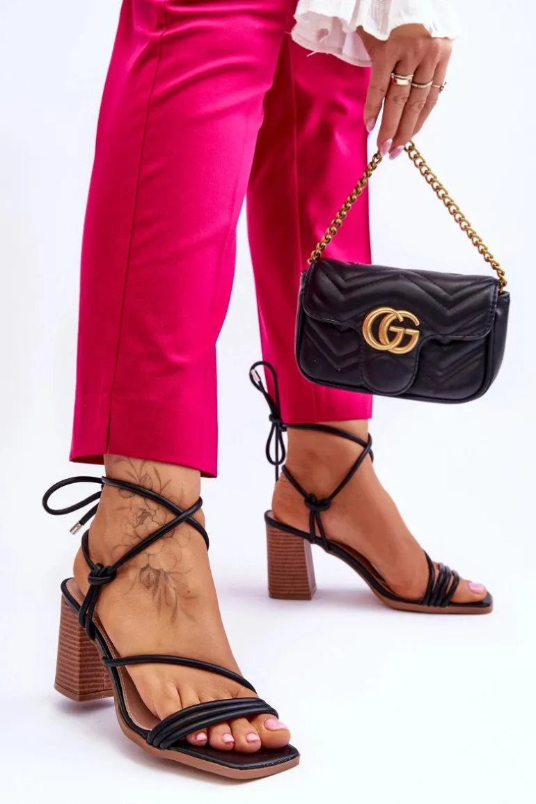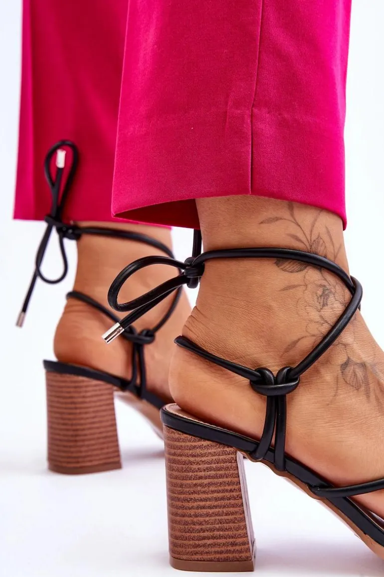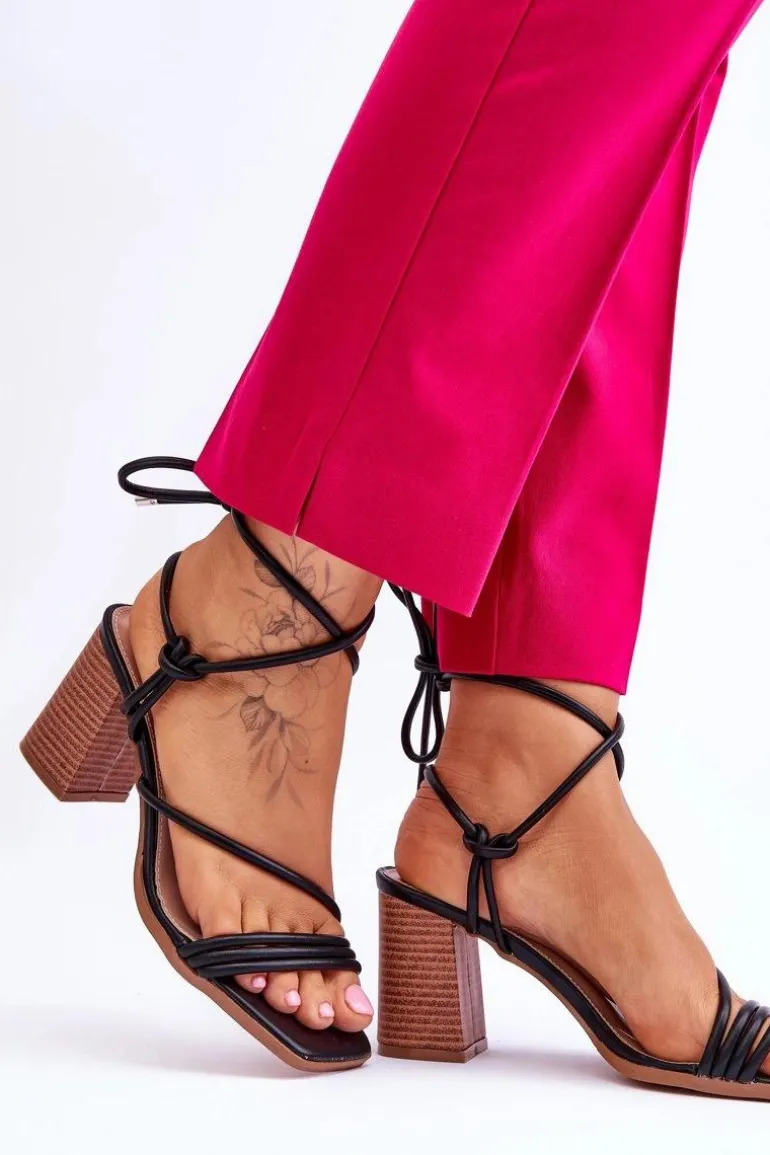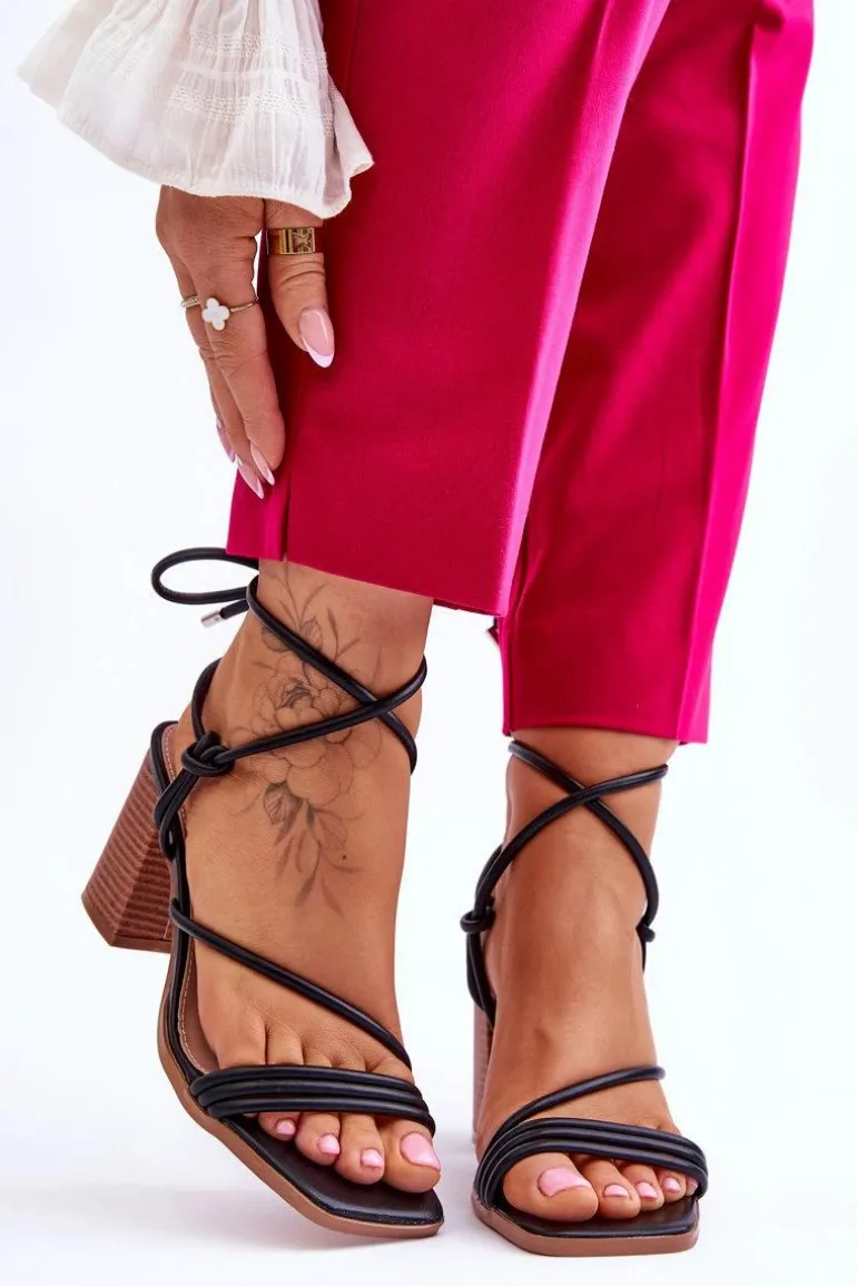 Niezwykłe sandałki na obcasie w postaci słupka świetnie sprawdzą się podczas upalnych dni. Idealnie będą prezentować się zarówno ze spodniami, jak i sukienkami. Buty zostały wykonane z eko skóry. Model ten posiada wiązanie wokół łydki. Sandałki posiadają odkryte palce oraz piętę. Miękka wkładka została wykonana z eko skóry. Ten model powinien być Twój! Przy wyborze rozmiaru prosimy sugerować się tabelą rozmiarów.