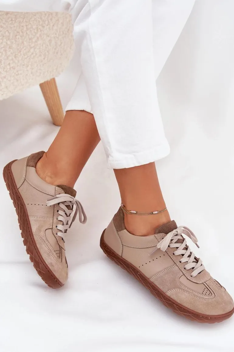 Trampki damskie, połączenie naturalnej skóry i zamszu, to idealne obuwie Barefoot, stworzone z myślą o naturalnym kontakcie stopy z podłożem. Dzięki cienkiej, elastycznej podeszwie, buty pozwalają na swobodny ruch i lepsze czucie nawierzchni. Model Barefoot wspiera naturalny ruch stopy, co korzystnie wpływa na jej zdrowie. Lekka i wygodna konstrukcja sprawia, że są to buty doskonałe do codziennego użytku, szczególnie dla osób, które stawiają na komfort i zdrowie swoich stóp. Przy wyborze rozmiaru prosimy sugerować się tabelą rozmiarów.