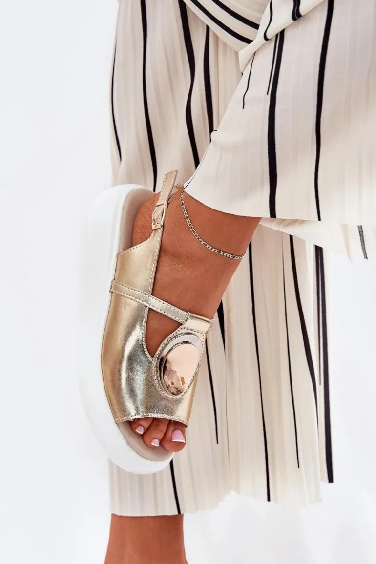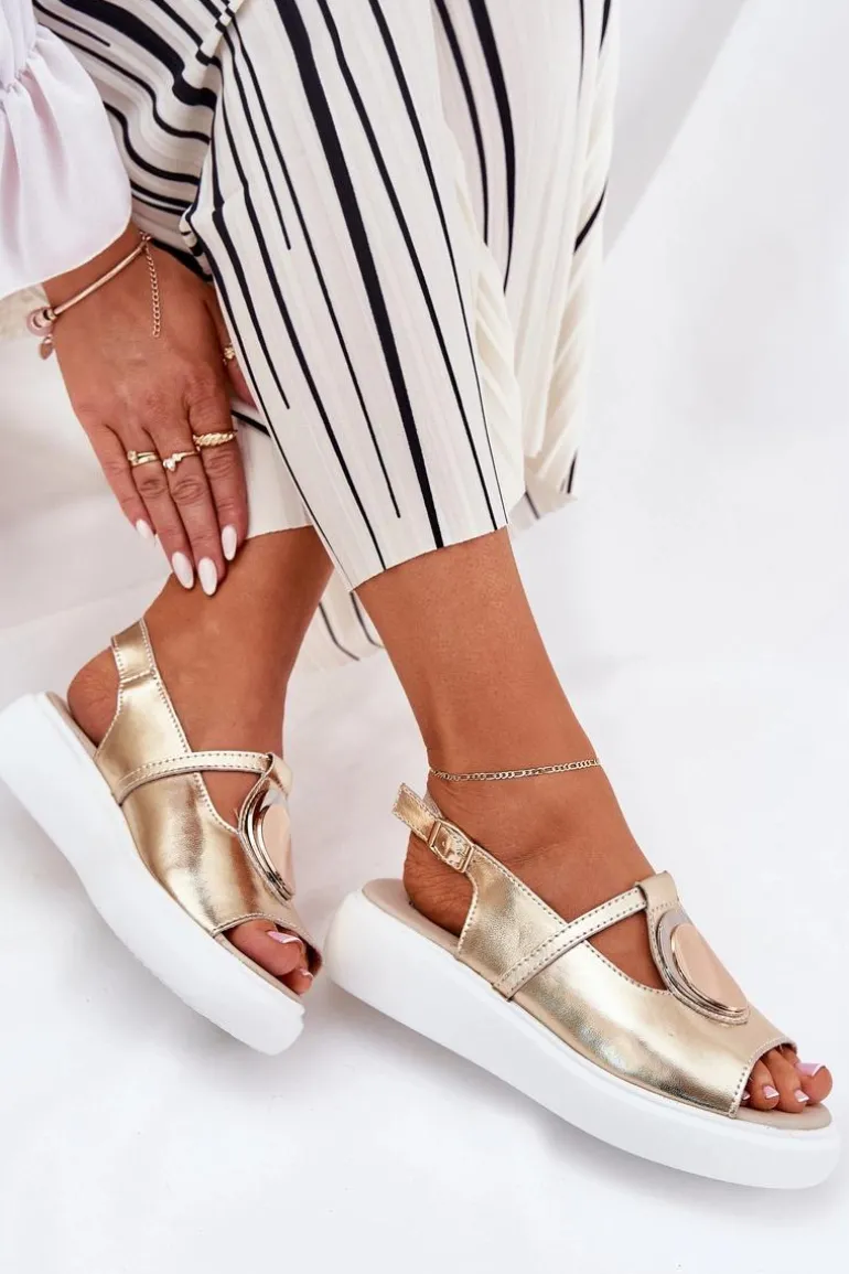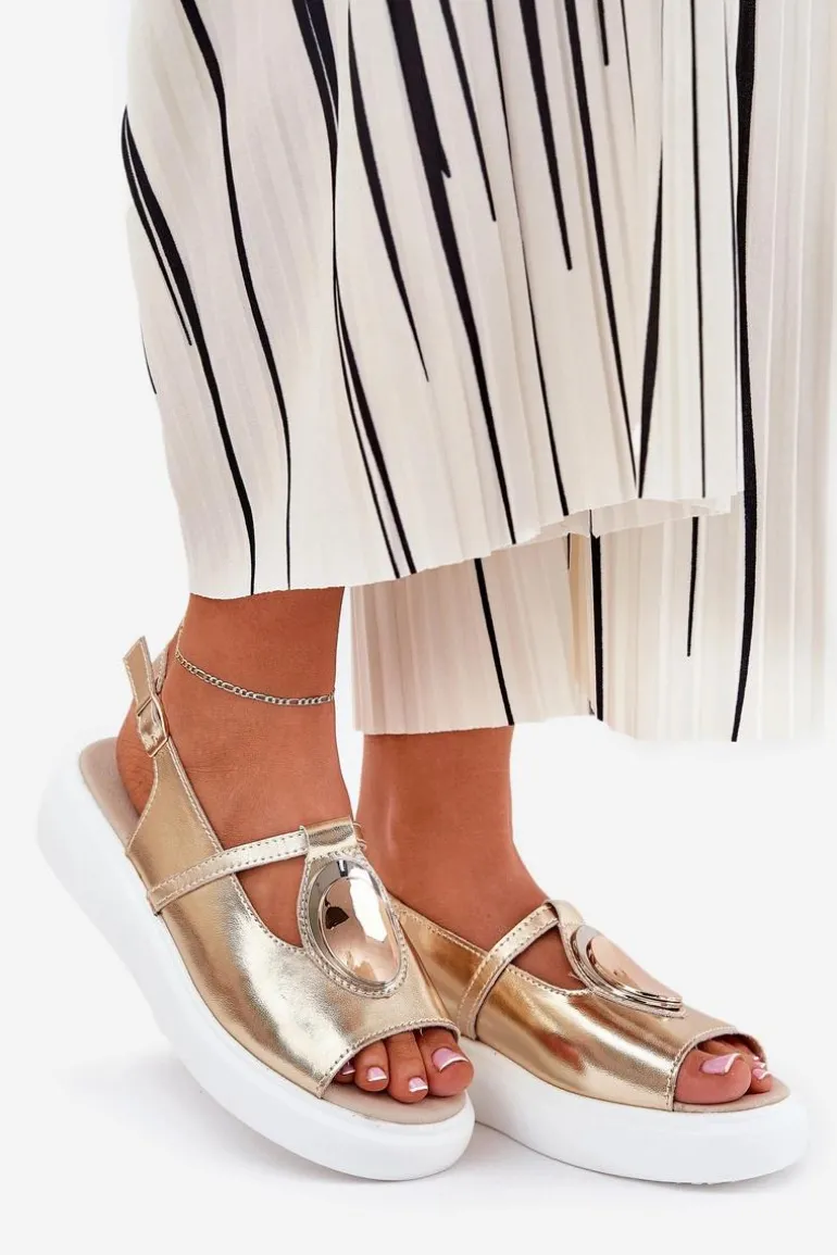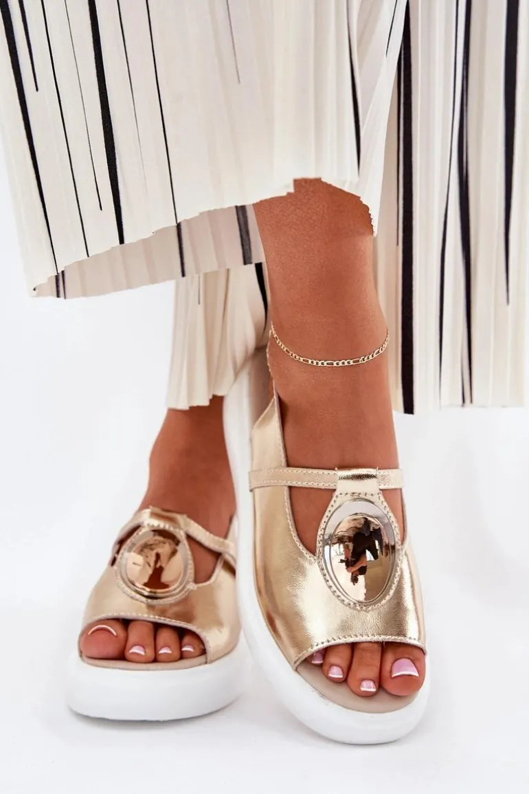 Skórzane Eleganckie Sandały Damskie S.Barski GR51-603 Złote