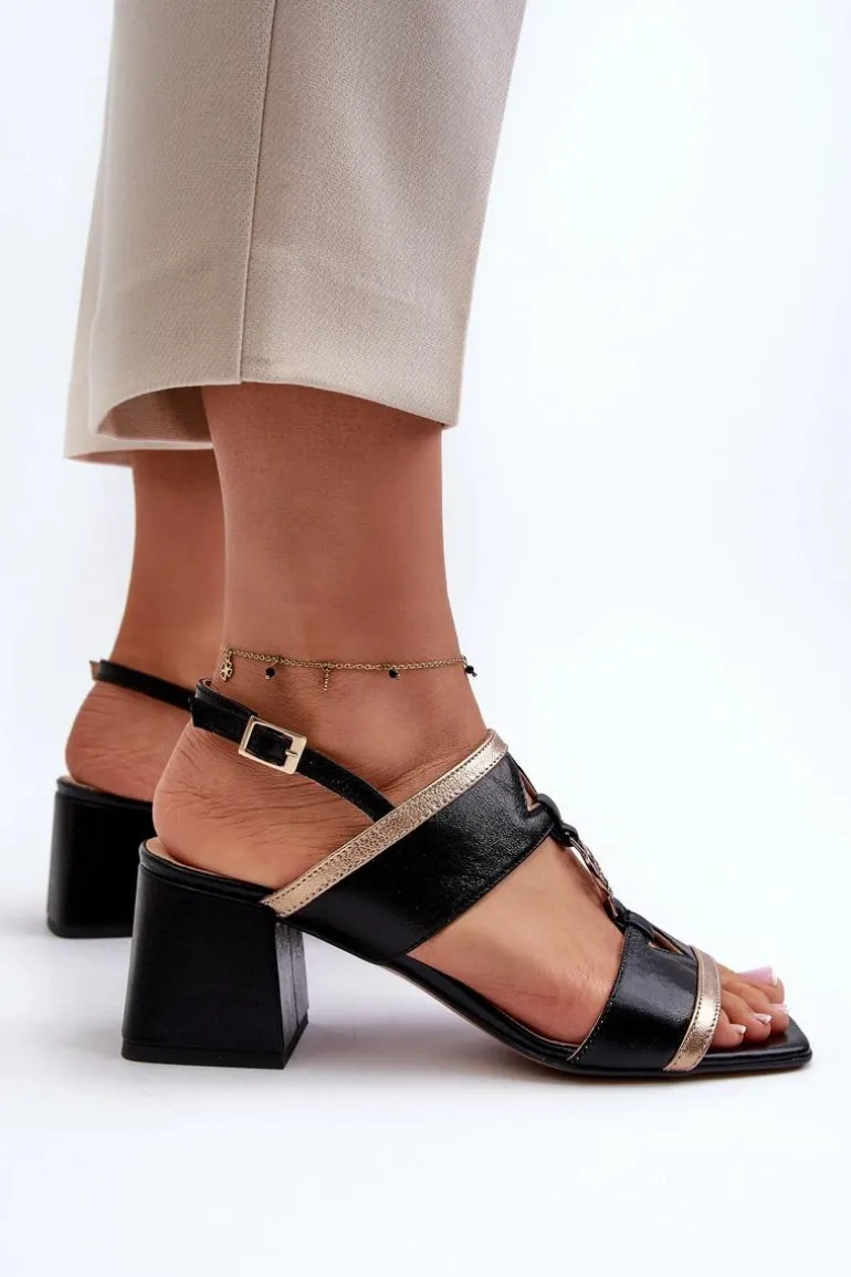 Sandały damskie wykonane ze skóry naturalnej. Osadzone na obcasie w postaci klocka. Zapinane na regulowany pasek ze sprzączką. Model ten będzie pasować do eleganckich spodni, sukienek i spódnic. Przy wyborze rozmiaru prosimy sugerować się tabelą rozmiarów.