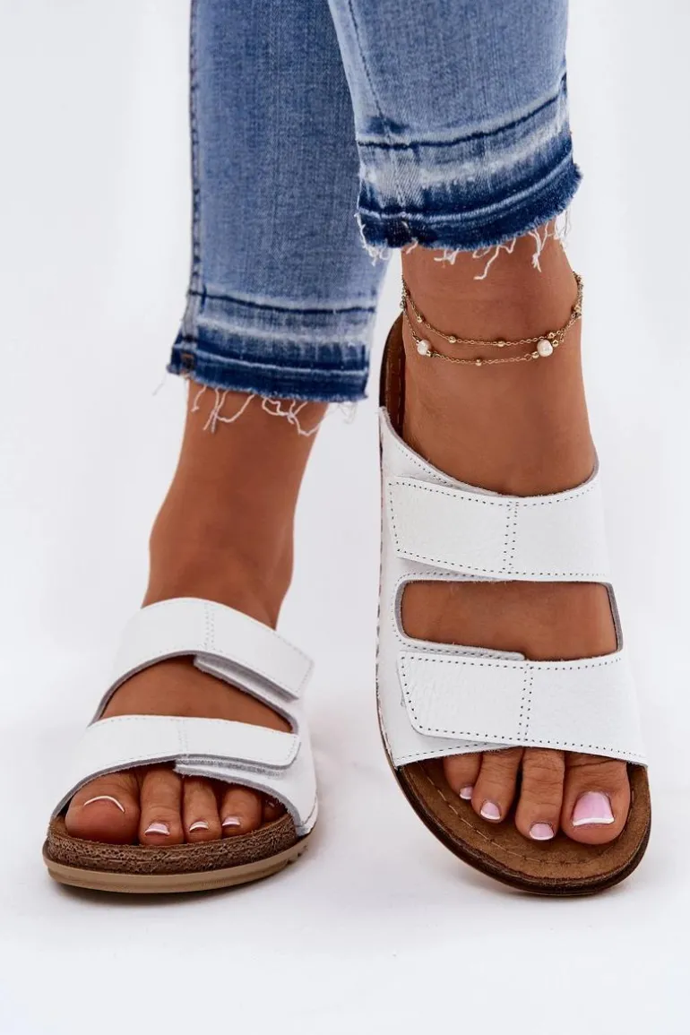 Klapki damskie od marki INBLU. Wykonane z naturalnej skóry. Model ten posiada paski z rzepami, co pozwala na doskonałe dopasowanie do tęgości stopy. Wnętrze wyłożone materiałem skóropodobnym dobrze przepuszczającym powietrze. Wkładka wewnętrzna „COMFORT ANATOMICO” profilowana, dostosowana do kształtu anatomicznego stopy, wykonana z miękkiej, naturalnej skóry. Spód wykonany z lekkiego i elastycznego tworzywa – poliuretanu – zapewnia sprężystość i bardzo dobre przenoszenie obciążeń na podłoże. Użyte materiały i zastosowana technologia zapewnia wysoki komfort użytkowania i wygodę. Przy wyborze rozmiaru prosimy sugerować się tabelą rozmiarów.