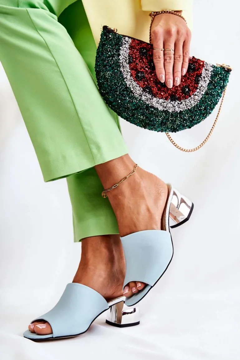 Modne, a zarazem wygodne klapki damskie zostały osadzone na obcasie w postaci klocka. Cholewka wykonana z naturalnej skóry. Nosek odkryty, zaokrąglony. Miękka wkładka została wykonana z naturalnej skóry. Model klasyczny, wsuwany. Świetnie sprawdzą się do wielu stylizacji. Idealnie dopasują się do tęgości nogi, dzięki skórzanej wyściółce. Spraw sobie radość kupując nową parę butów, które będą idealne na letnie dni! Przy wyborze rozmiaru prosimy sugerować się tabelą rozmiarów.