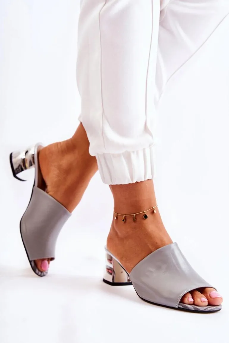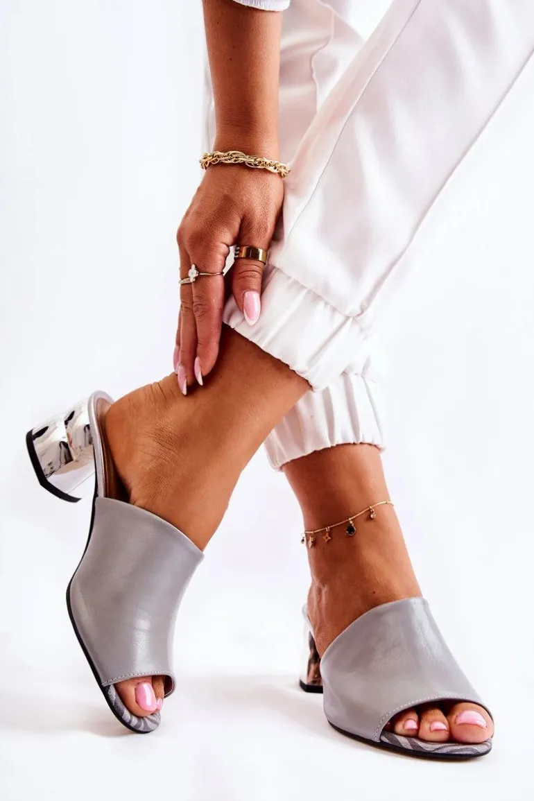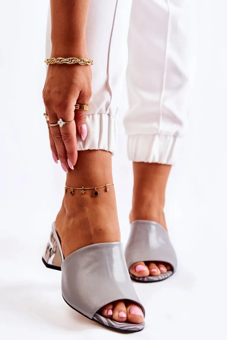 Modne, a zarazem wygodne klapki damskie zostały osadzone na obcasie w postaci klocka. Cholewka wykonana z naturalnej skóry. Nosek odkryty, zaokrąglony. Miękka wkładka została wykonana z naturalnej skóry. Model klasyczny, wsuwany. Świetnie sprawdzą się do wielu stylizacji. Idealnie dopasują się do tęgości nogi, dzięki skórzanej wyściółce. Spraw sobie radość kupując nową parę butów, które będą idealne na letnie dni! Przy wyborze rozmiaru prosimy sugerować się tabelą rozmiarów.