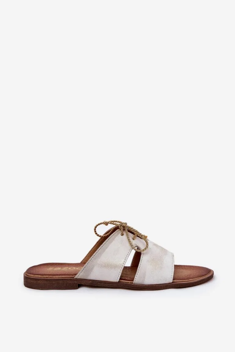 Damskie klapki z naturalnej skóry to świetny wybór na słoneczne dni, łączący elegancję z wygodą. Płaski obcas zapewnia komfort, a szykowny złoty sznureczek na cholewce dodaje im wyjątkowego uroku. Doskonałe do różnych letnich stylizacji, te klapki będą doskonałym dopełnieniem Twojego looku! Przy wyborze rozmiaru prosimy sugerować się tabelą rozmiarów.