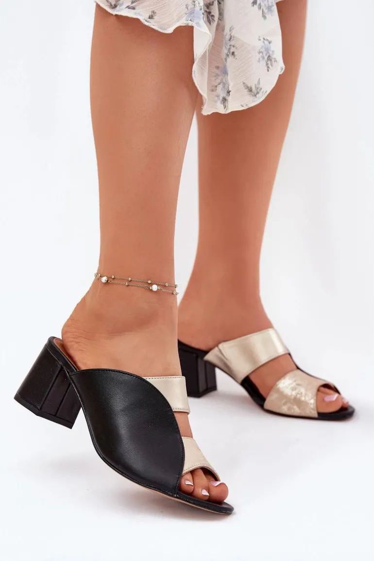 Klapki damskie wykonane z naturalnej skóry to propozycja dla kobiet ceniących elegancję i wygodę. Osadzone na stabilnym obcasie typu słupek, świetnie sprawdzą się zarówno na co dzień, jak i podczas bardziej formalnych okazji. Model ten posiada miękką wkładkę, która zapewni komfort na każdym kroku. Idealny wybór na letnie dni, zarówno do eleganckich, jak i codziennych stylizacji. Przy wyborze rozmiaru prosimy sugerować się tabelą rozmiarów.