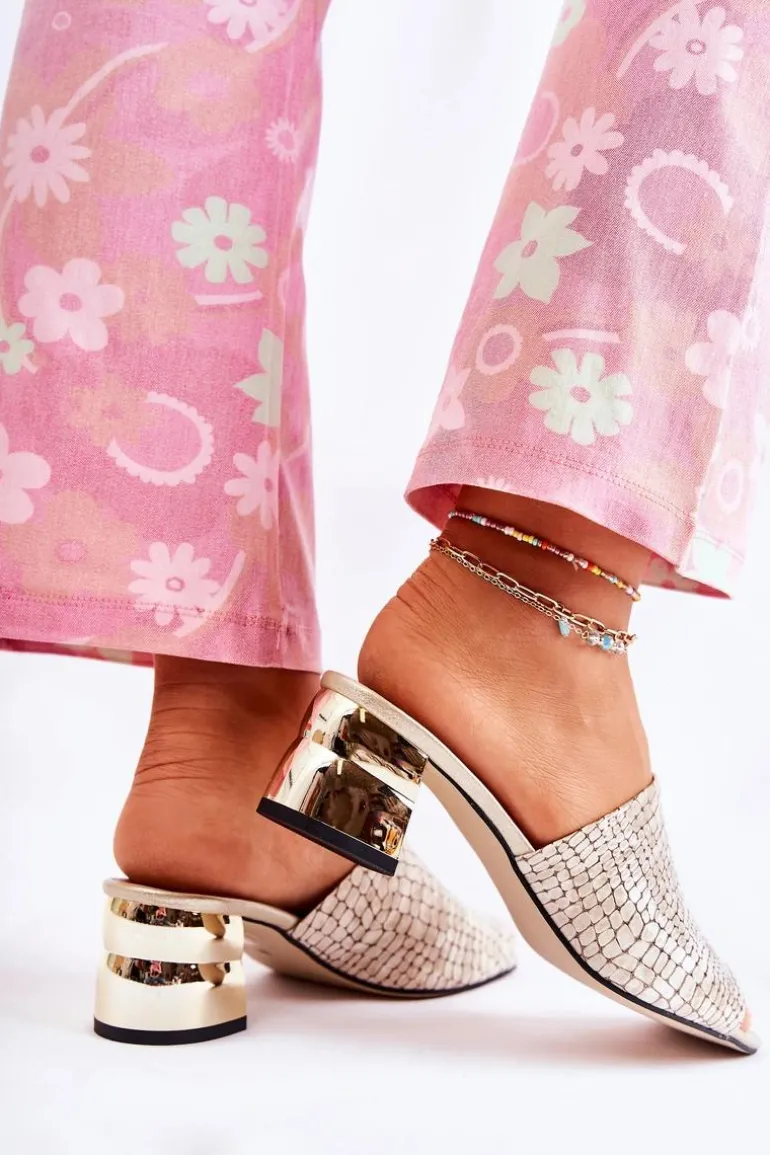Modne, a zarazem wygodne klapki damskie zostały osadzone na obcasie w postaci klocka. Cholewka wykonana z naturalnej skóry. Nosek odkryty, zaokrąglony. Miękka wkładka została wykonana z naturalnej skóry. Model klasyczny, wsuwany. Świetnie sprawdzą się do wielu stylizacji. Idealnie dopasują się do tęgości nogi, dzięki skórzanej wyściółce. Spraw sobie radość kupując nową parę butów, które będą idealne na letnie dni! Przy wyborze rozmiaru prosimy sugerować się tabelą rozmiarów.
