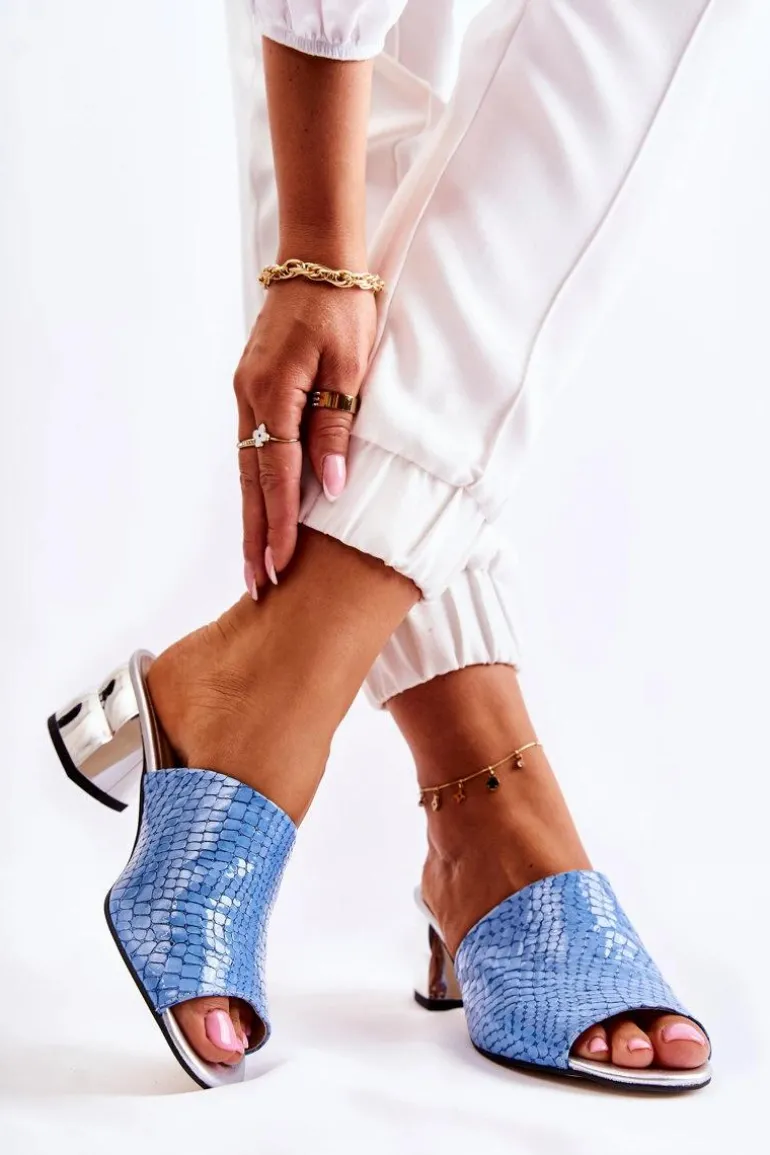 Modne, a zarazem wygodne klapki damskie zostały osadzone na obcasie w postaci klocka. Cholewka wykonana z naturalnej skóry. Nosek odkryty, zaokrąglony. Miękka wkładka została wykonana z naturalnej skóry. Model klasyczny, wsuwany. Świetnie sprawdzą się do wielu stylizacji. Idealnie dopasują się do tęgości nogi, dzięki skórzanej wyściółce. Spraw sobie radość kupując nową parę butów, które będą idealne na letnie dni! Przy wyborze rozmiaru prosimy sugerować się tabelą rozmiarów.