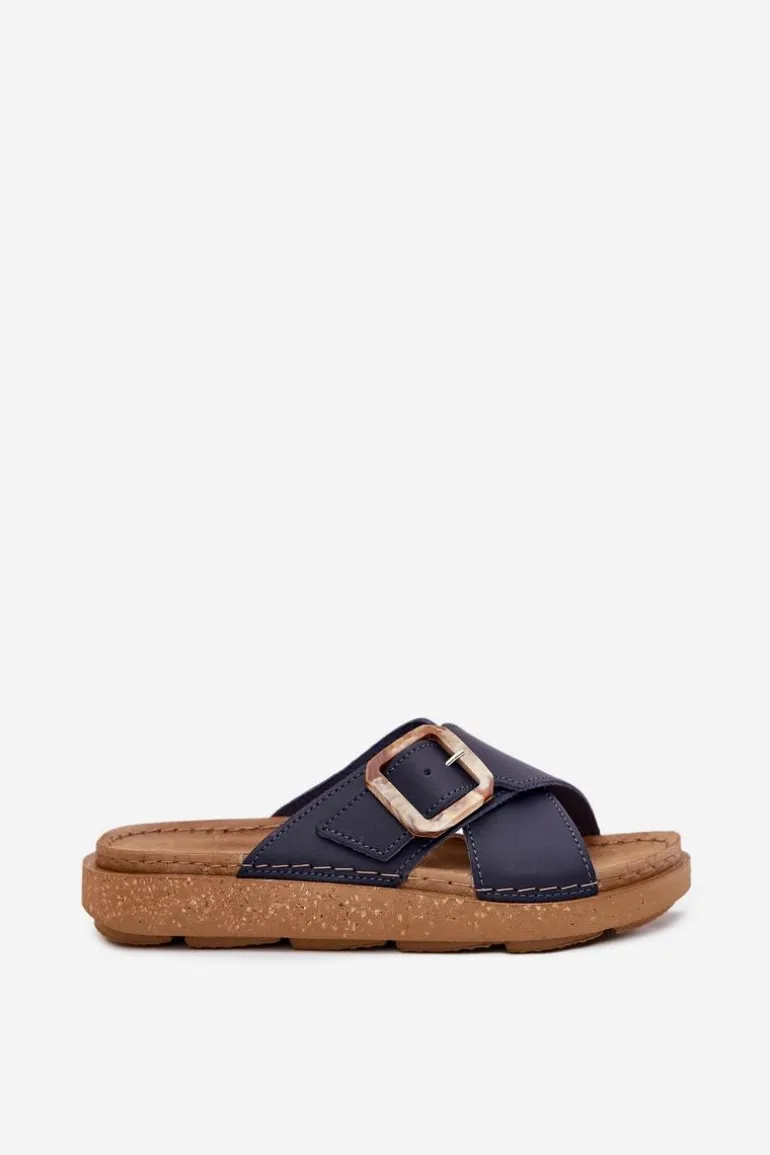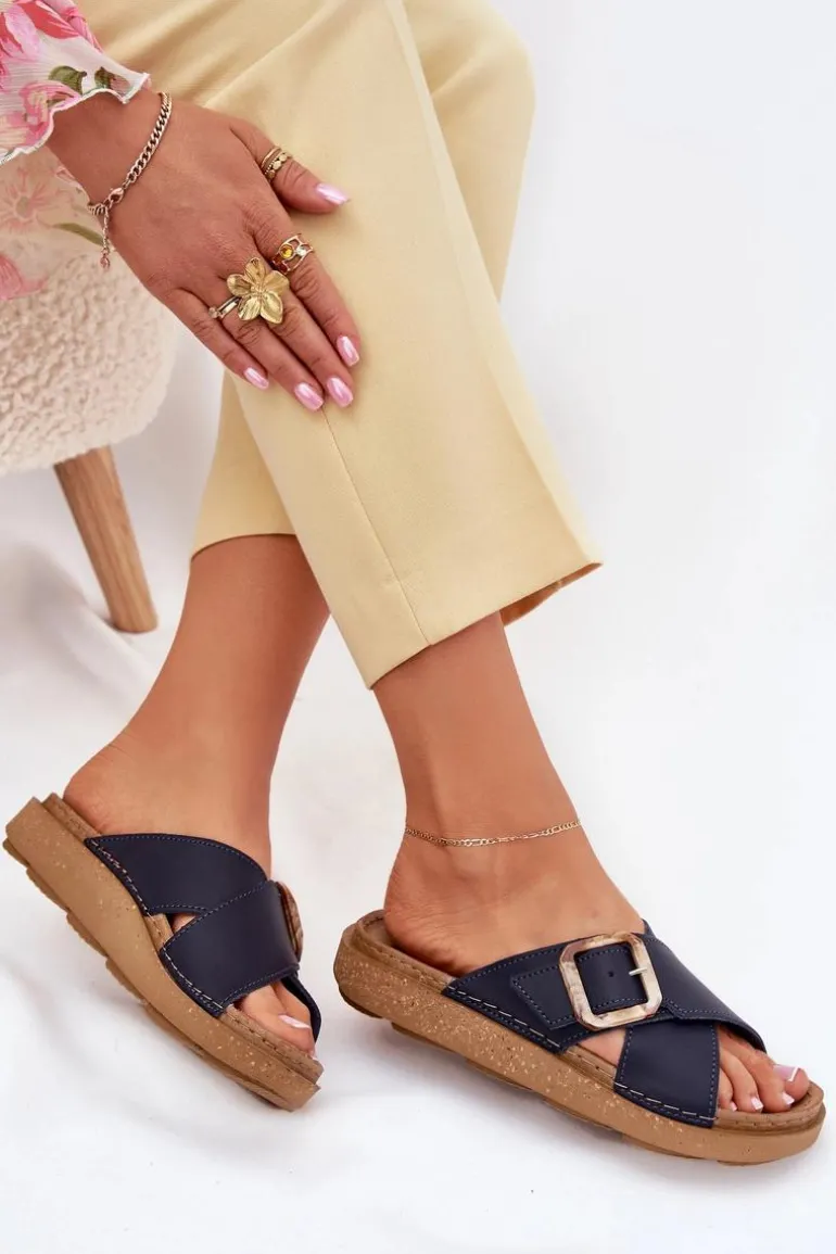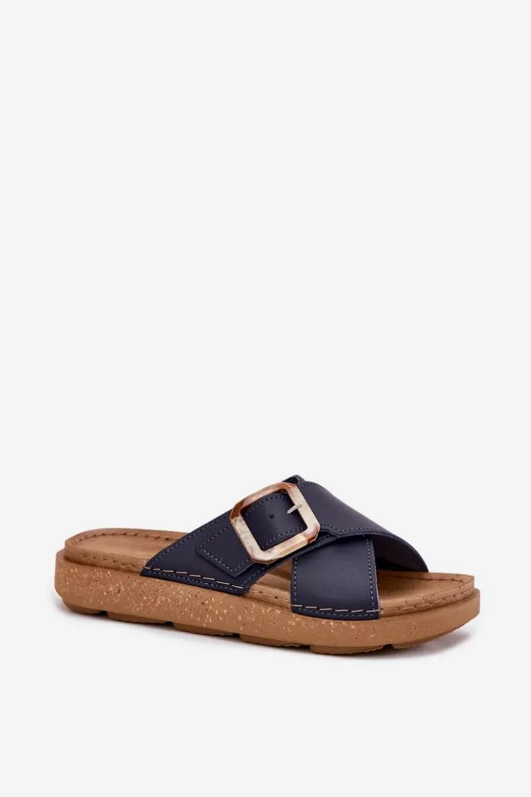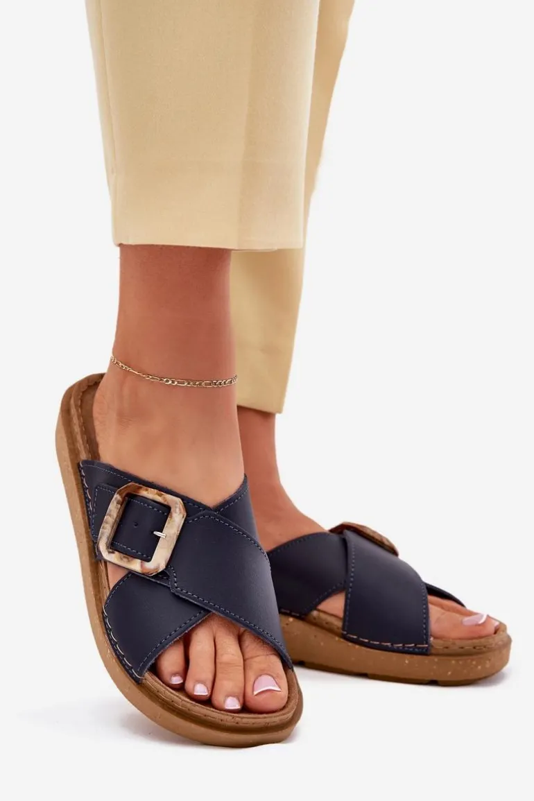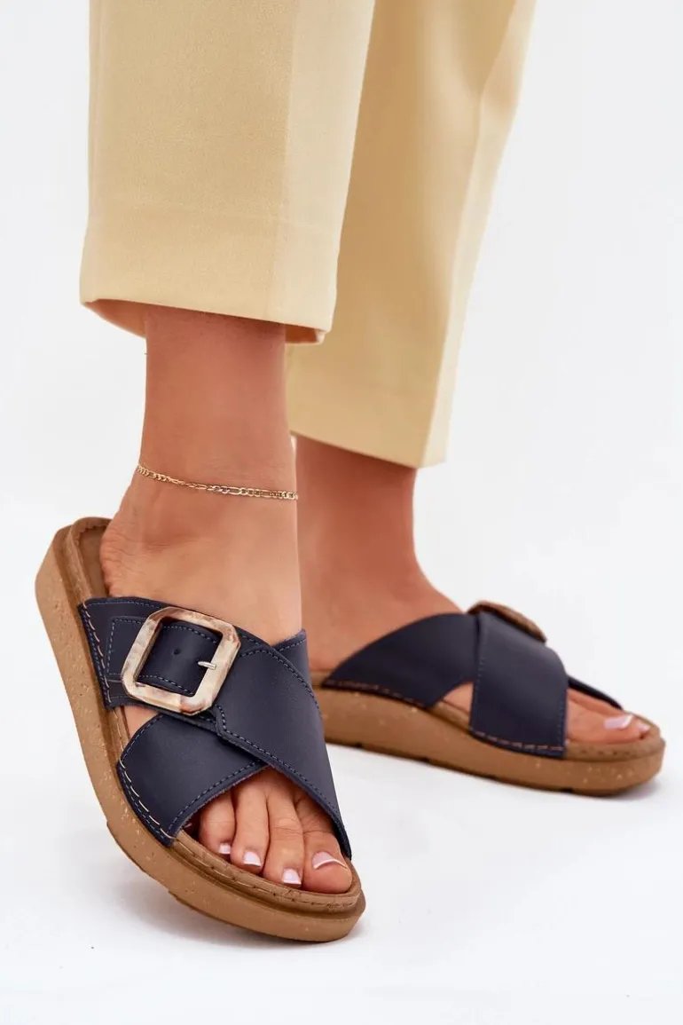 Klapki damskie od marki INBLU. Wykonane z naturalnej skóry. Osadzone na platformie. Model ten posiada ozdobną klamrę z regulowanym paskiem. Wkładka wewnętrzna „COMFORT ANATOMICO” profilowana, dostosowana do kształtu anatomicznego stopy, wykonana z miękkiej, naturalnej skóry. Spód dwuwarstwowy wykonany z lekkiego i elastycznego tworzywa – poliuretanu – zapewnia sprężystość i bardzo dobre przenoszenie obciążeń na podłoże. Przy wyborze rozmiaru prosimy sugerować się tabelą rozmiarów.