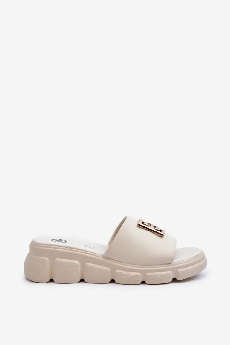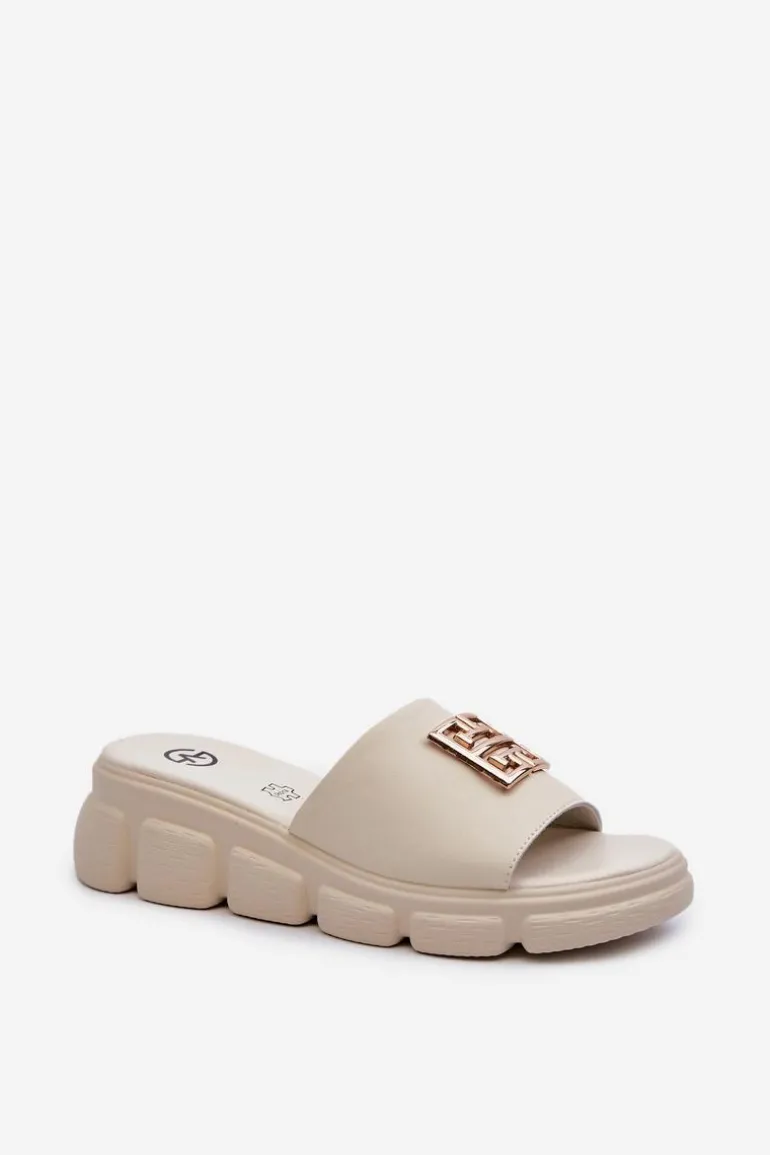 Damskie klapki marki Vinceza. Osadzone na koturnie zapewniają stabilność i wygodę podczas noszenia. Wykonane z naturalnej skóry. Z przodu złota ozdoba dodaje im subtelnego blasku. Lekki model, który nie tylko podkreśli Twoją stylizację, ale także doda jej szczypty elegancji. Przy wyborze rozmiaru prosimy sugerować się tabelą rozmiarów.