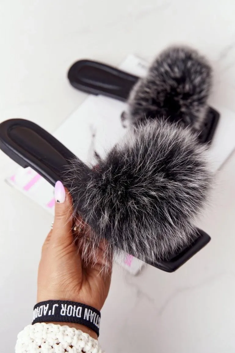 Skórzane Klapki Z Futerkiem Czarno-Białe Love You So