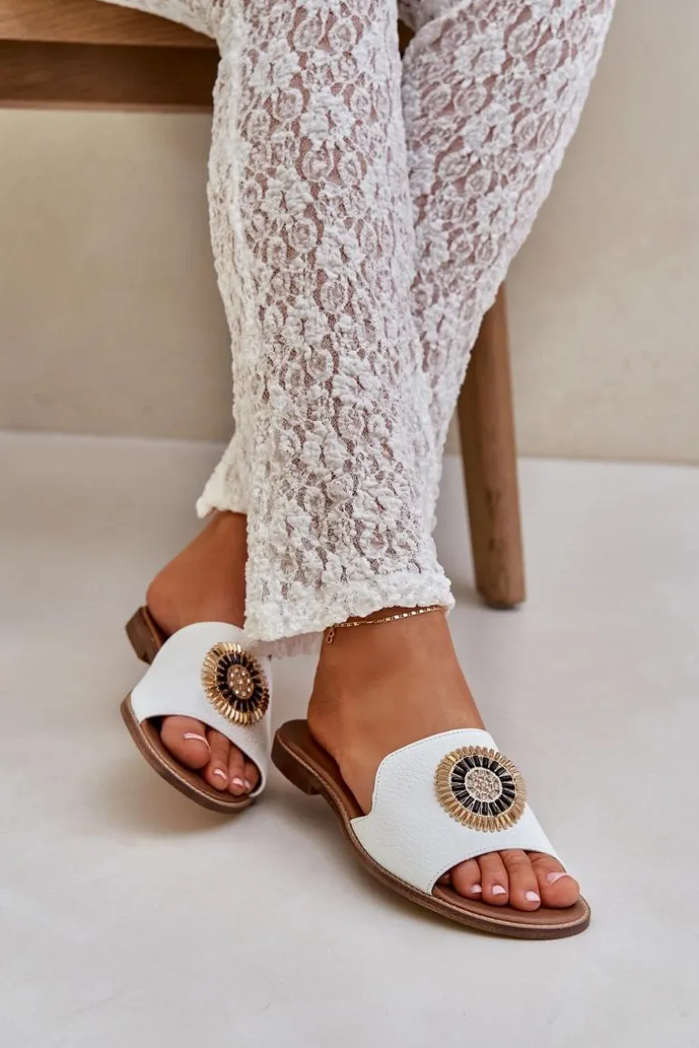Damskie klapki wykonane z wysokiej jakości skóry naturalnej to połączenie elegancji i wygody. Osadzone na płaskim obcasie, zapewniają komfort noszenia przez cały dzień. Subtelna ozdoba na cholewce nadaje im wyjątkowego uroku i klasy, dzięki czemu świetnie sprawdzą się zarówno w casualowych, jak i bardziej eleganckich stylizacjach. Idealne na ciepłe dni, stanowią niezastąpiony dodatek do letnich sukienek, spodni czy spódnic. Przy wyborze rozmiaru prosimy sugerować się tabelą rozmiarów.