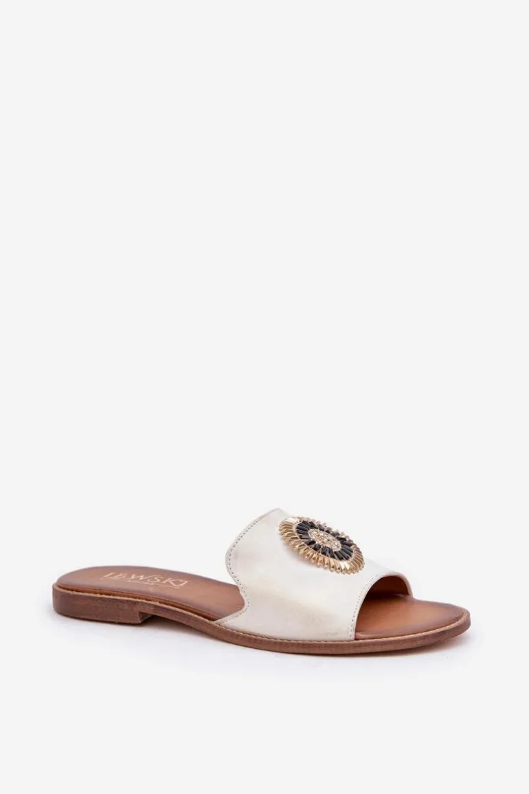 Damskie klapki wykonane z wysokiej jakości skóry naturalnej to połączenie elegancji i wygody. Osadzone na płaskim obcasie, zapewniają komfort noszenia przez cały dzień. Subtelna ozdoba na cholewce nadaje im wyjątkowego uroku i klasy, dzięki czemu świetnie sprawdzą się zarówno w casualowych, jak i bardziej eleganckich stylizacjach. Idealne na ciepłe dni, stanowią niezastąpiony dodatek do letnich sukienek, spodni czy spódnic. Przy wyborze rozmiaru prosimy sugerować się tabelą rozmiarów.