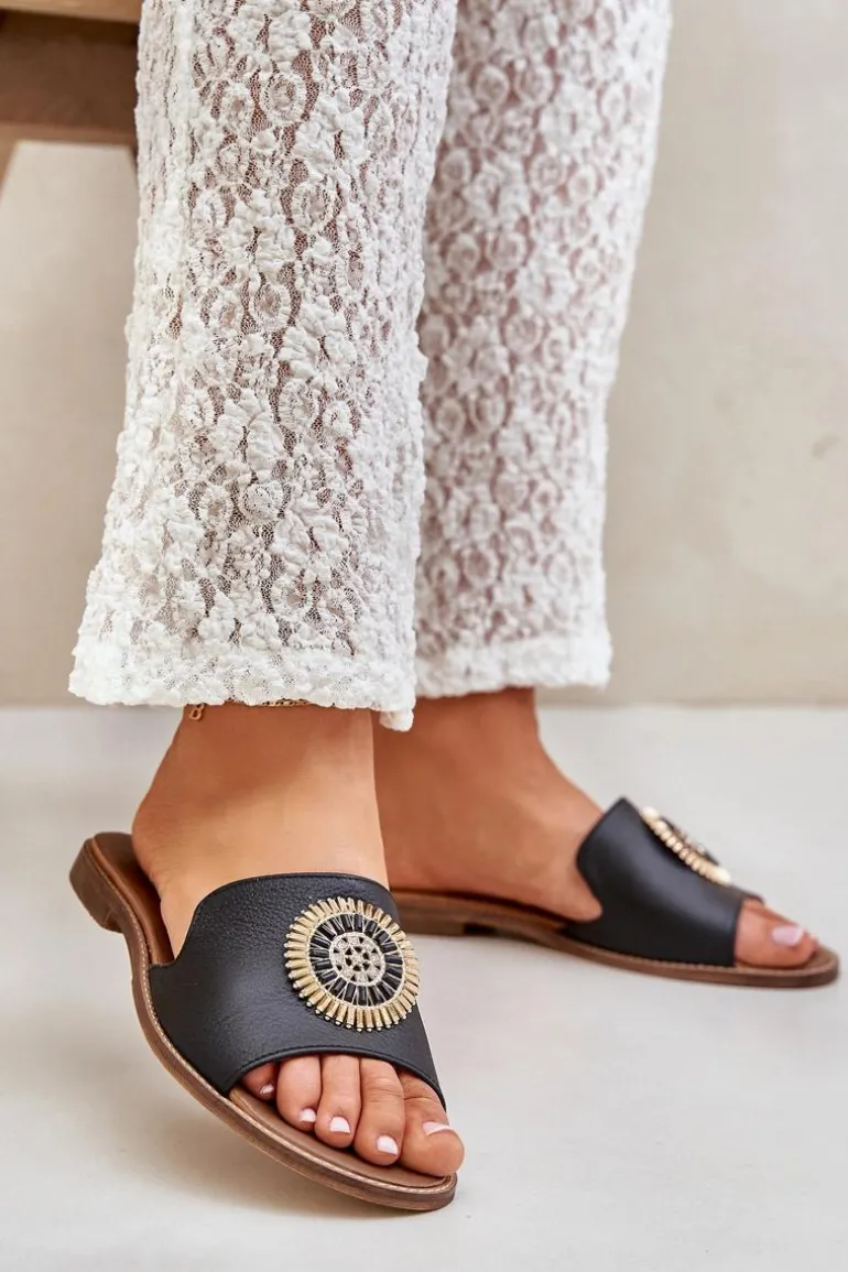 Damskie klapki wykonane z wysokiej jakości skóry naturalnej to połączenie elegancji i wygody. Osadzone na płaskim obcasie, zapewniają komfort noszenia przez cały dzień. Subtelna ozdoba na cholewce nadaje im wyjątkowego uroku i klasy, dzięki czemu świetnie sprawdzą się zarówno w casualowych, jak i bardziej eleganckich stylizacjach. Idealne na ciepłe dni, stanowią niezastąpiony dodatek do letnich sukienek, spodni czy spódnic. Przy wyborze rozmiaru prosimy sugerować się tabelą rozmiarów.