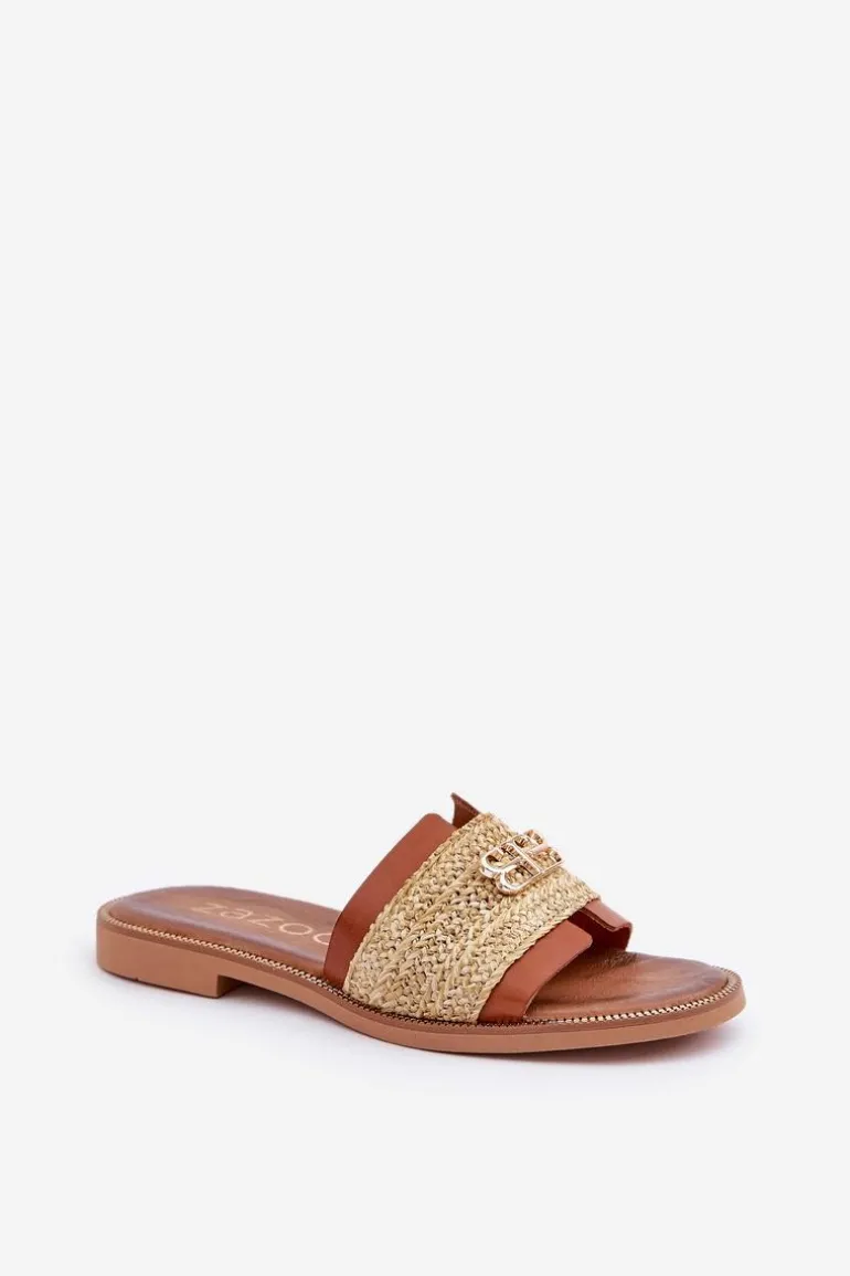 Klapki damskie z naturalnej skóry to stylowa propozycja na ciepłe dni. Osadzone na płaskim obcasie, zapewniają wygodę i komfort przez cały dzień. Wyróżniają się słomkową plecionką, która nadaje im lekkiego, letniego charakteru, oraz ozdobnym złotym detalem, który dodaje elegancji i subtelnego blasku. Idealne do wakacyjnych stylizacji, te klapki łączą naturalny urok z modnym akcentem, doskonale komponując się z casualowymi i letnimi outfitami. Przy wyborze rozmiaru prosimy sugerować się tabelą rozmiarów.