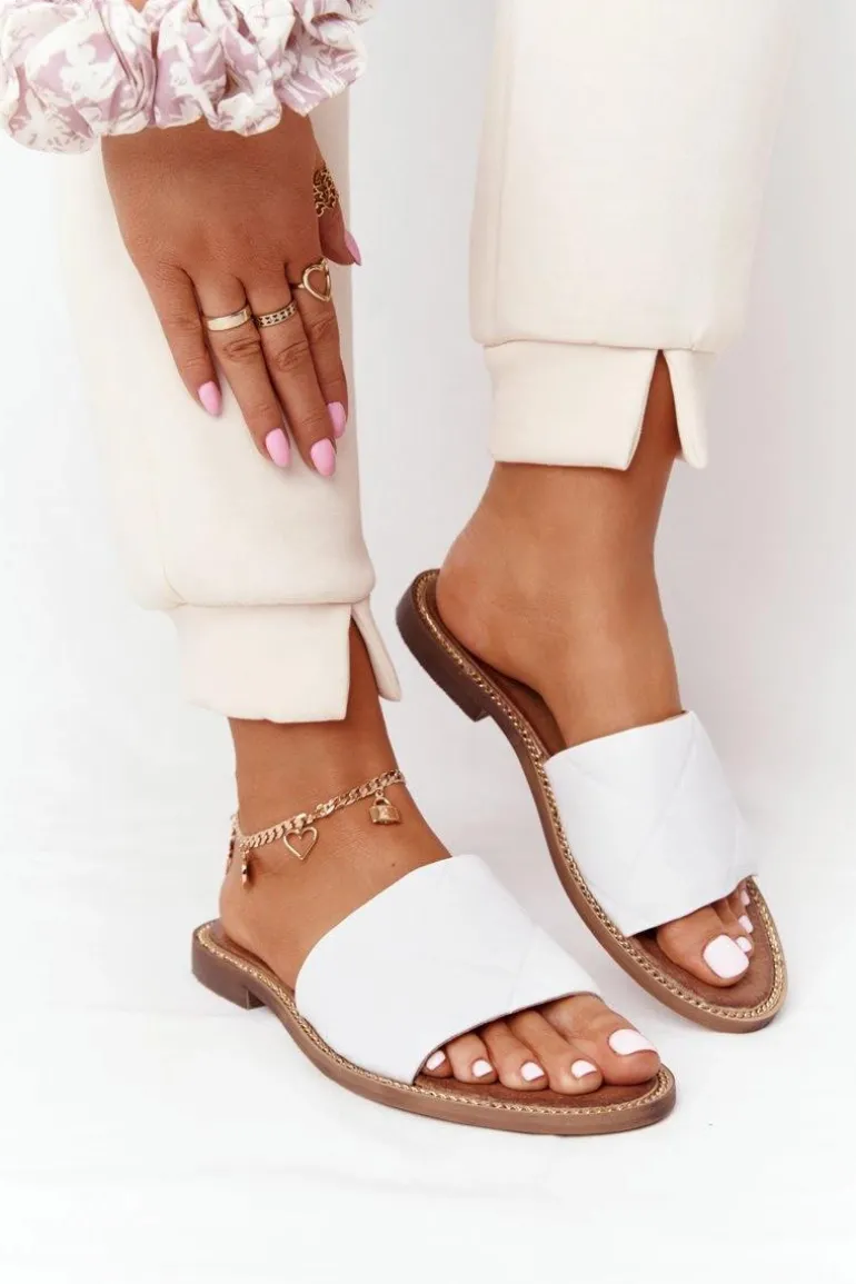 Eleganckie klapki od polskiej firmy Nicole. Buty wykonane są w całości ze skóry naturalnej z dbałością o każdy detal. Miękka wkładka oraz antypoślizgowa podeszwa zadbają o Twój komfort. Klapki dopełnią wiele letnich stylizacji! Koniecznie sprawdź całą naszą kolekcję butów marki Nicole. Przy wyborze rozmiaru prosimy sugerować się tabelą rozmiarów.