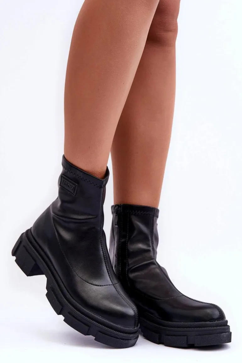 Klasyczne, damskie botki zostały wykonane z eko skóry. Osadzone na masywnej platformie i płaskim obcasie. Zapinane na suwak po wewnętrznej stronie buta. Na cholewce znajdują się przeszycia. Zapiętek w tym obuwiu jest usztywniony. Świetny model do wielu stylizacji! Koniecznie powinny znaleźć się w Twojej szafie! Przy wyborze rozmiaru prosimy sugerować się tabelą rozmiarów.