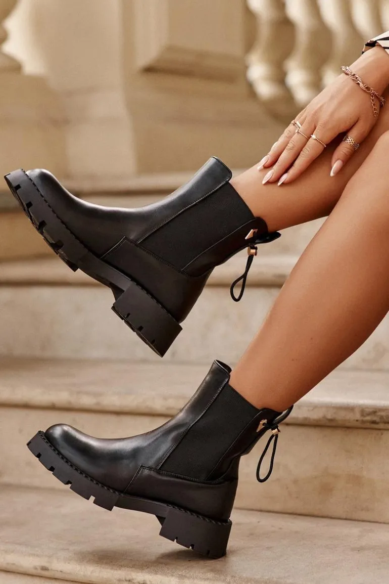 Damskie botki wykonane z eko skóry. Model wsuwany z ocieplanym środkiem. Noski zaokrąglone. Sztyblety zostały osadzone na płaskim obcasie, który zapewni stabilność na każdym kroku. Koniecznie powinnaś mieć ten model w swojej szafie! Przy wyborze rozmiaru prosimy sugerować się tabelą rozmiarów.