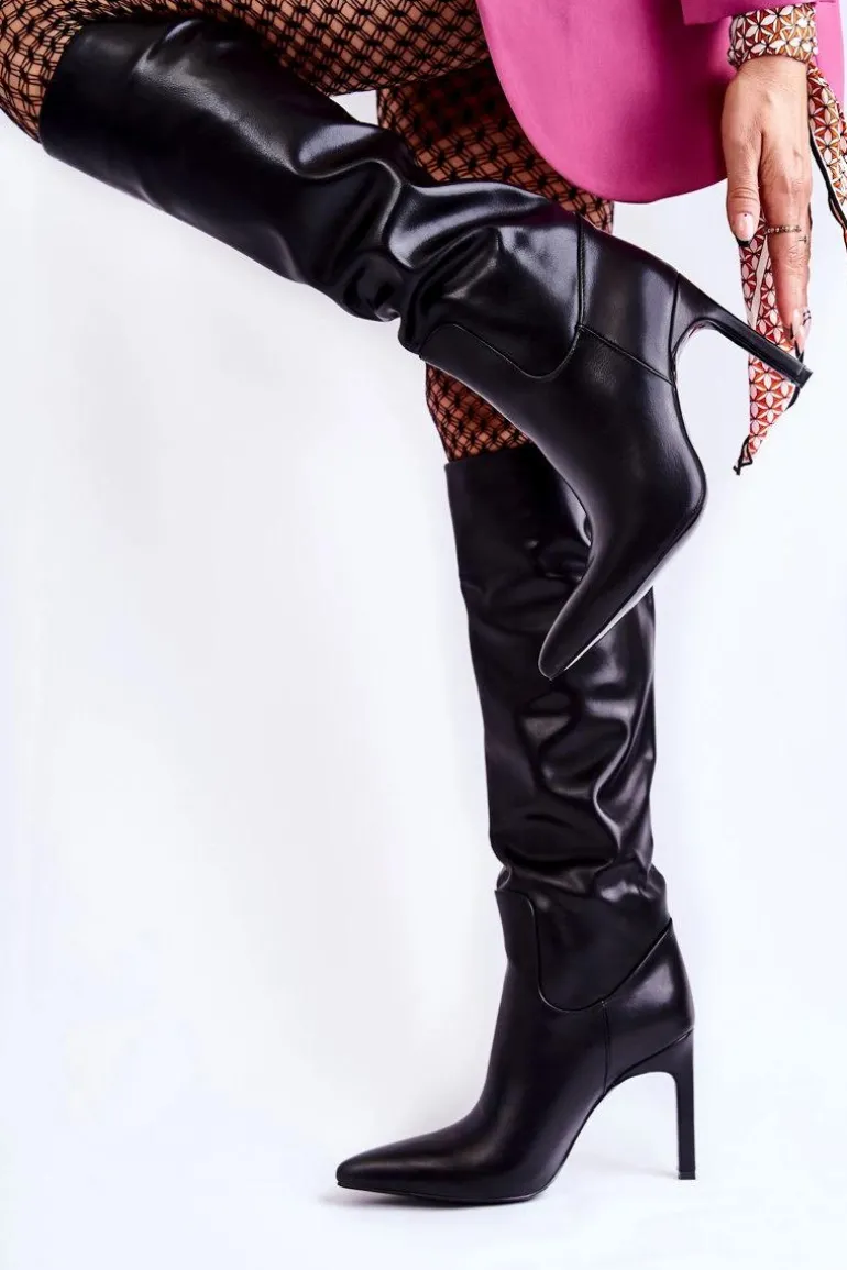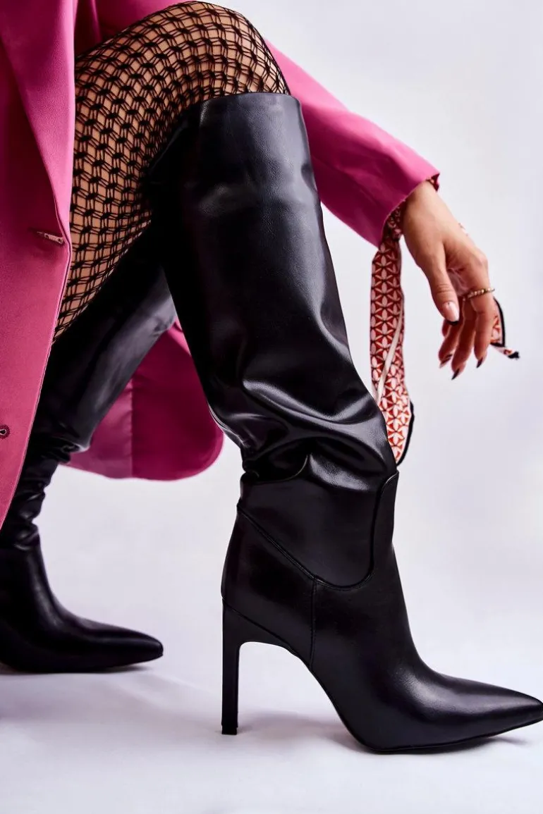 Wyjątkowe, wsuwane kozaki wykonane z eko skóry. Model ten na pewno zachwyci niejedną miłośniczkę ciepłych i wygodnych butów na obcasie! Posiadają usztywniany zapiętek. Model z noskiem w szpic oraz obcas w postaci szpilki optycznie wysmuklą nogi. Kozaki posiadają ocieplenie w postaci miłego w dotyku koca obuwniczego. Ten model powinien znaleźć się w Twojej szafie! Przy wyborze rozmiaru prosimy sugerować się tabelą rozmiarów.