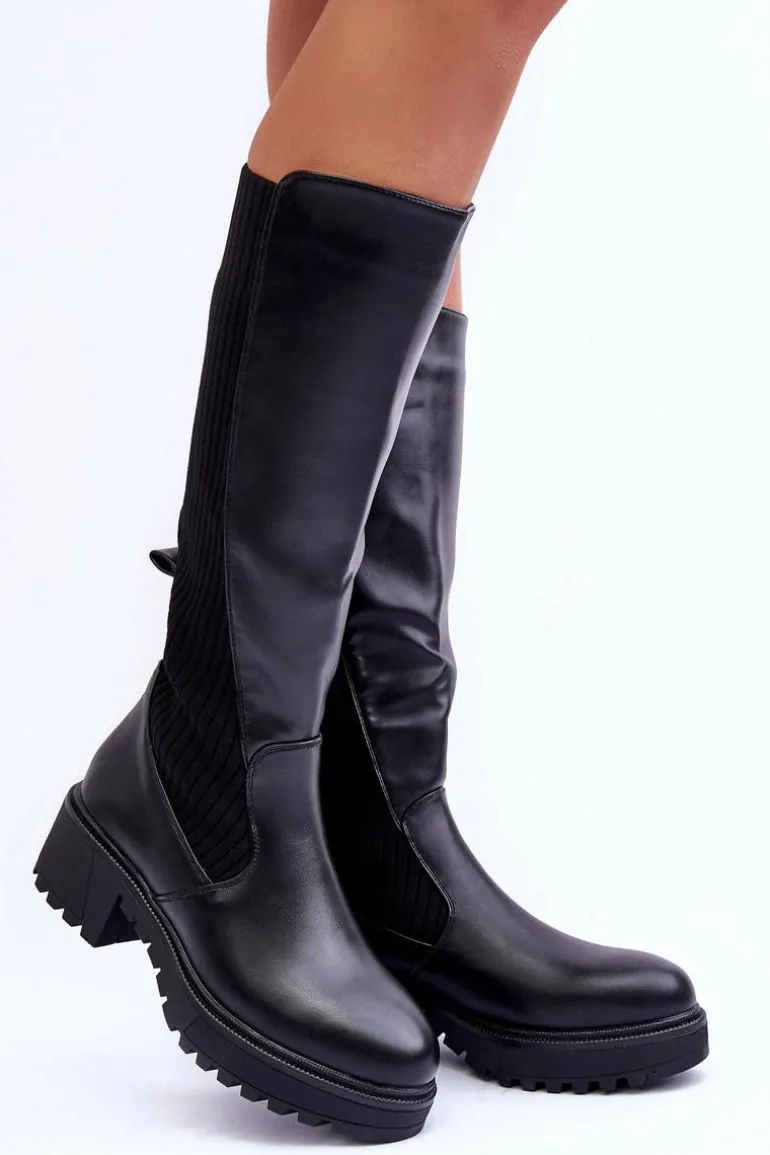 Damskie, klasyczne kozaki zostały wykonane z połączenia eko skóry i tkaniny. Cholewka do połowy łydki z elastycznymi wstawkami w formie skarpety. Wewnątrz ocieplone kocem obuwniczym. Zapiętek jest usztywniony. Miękka wkładka zapewni komfortowe użytkowanie. Model ten jest wsuwany. Przy wyborze rozmiaru prosimy kierować tabelą rozmiarów.