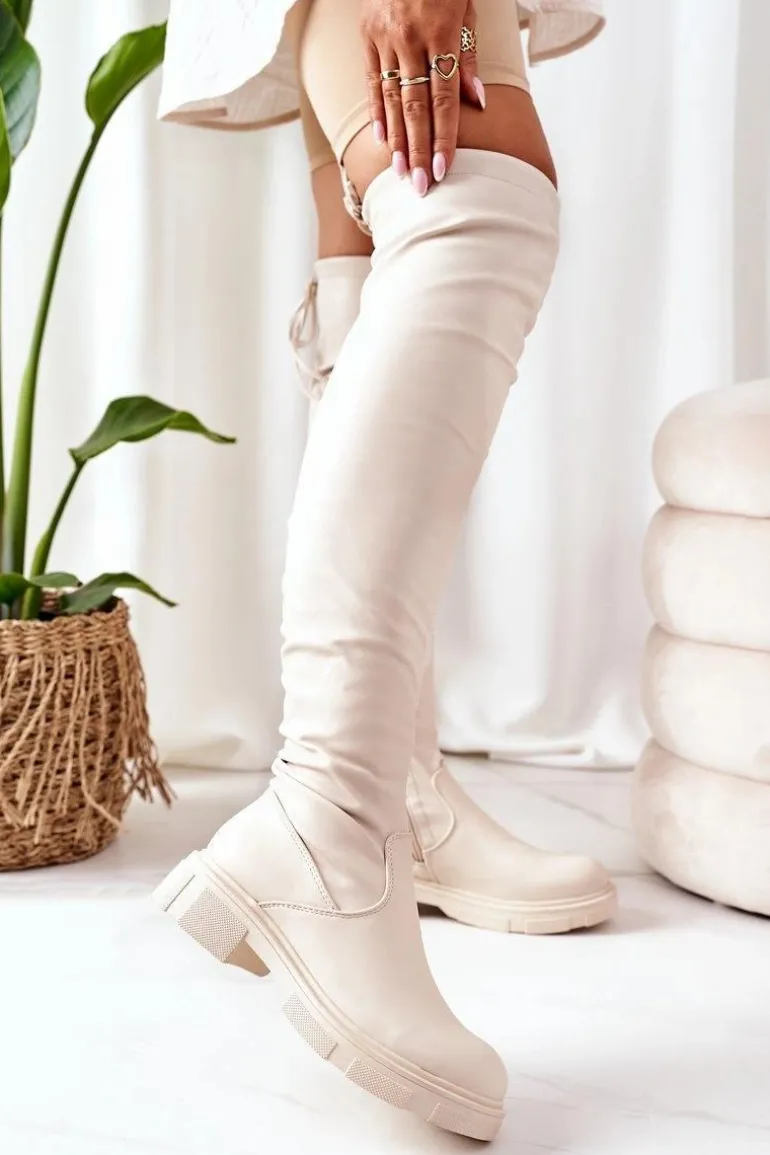 Kozaki za kolano wykonane z miękkiej skóry ekologicznej. Wszyty suwak ułatwi zakładanie.
