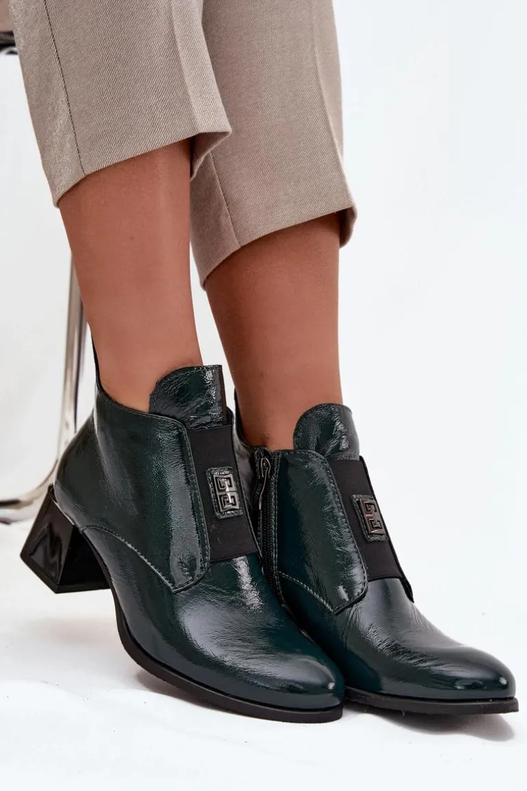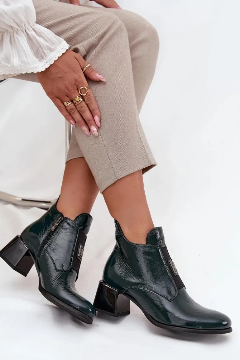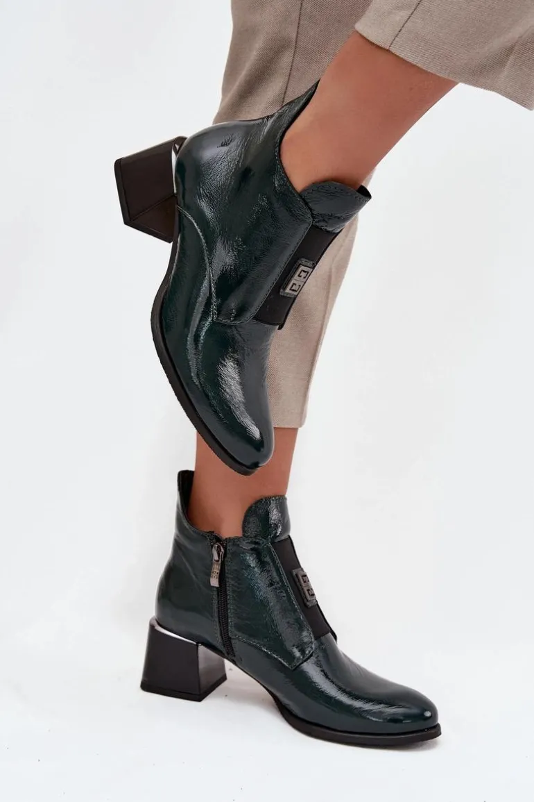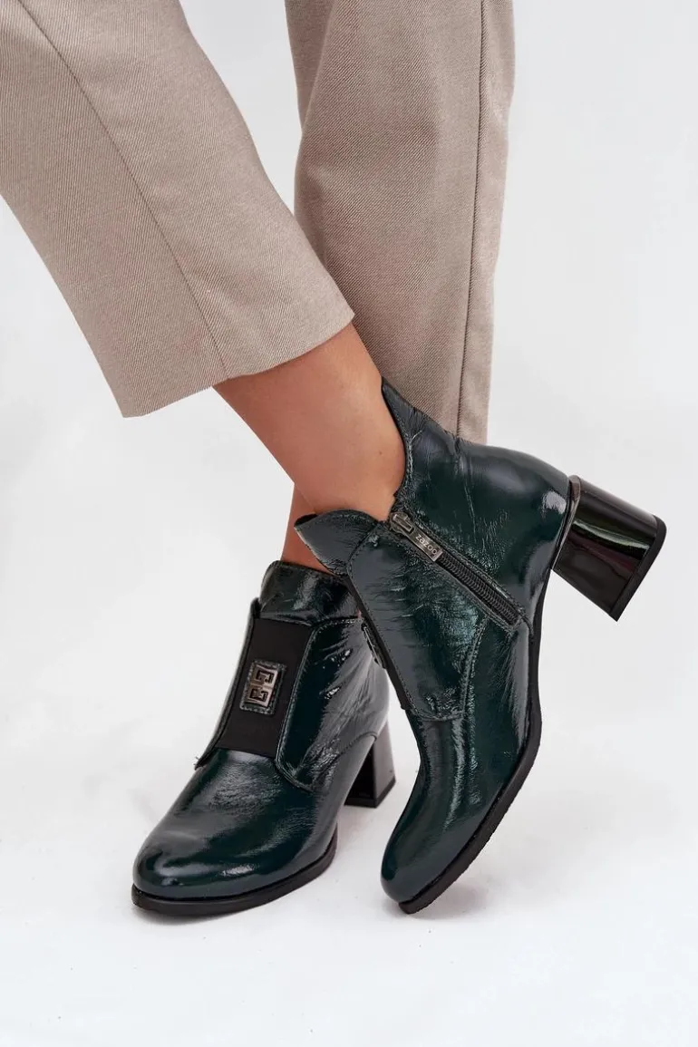 Botki ze skóry naturalnej to połączenie elegancji i wygody. Osadzone na stabilnym obcasie typu klocek, zapewniają komfort przez cały dzień. Wnętrze jest ocieplane, co gwarantuje ciepło w chłodniejsze dni. Z przodu buta znajduje się elastyczna wstawka, która nie tylko ułatwia zakładanie, ale również dodaje subtelnego, modnego akcentu. Zapinane na zamek. Dodatkowo mały ozdobny detal sprawia, że te botki wyróżniają się oryginalnym stylem. Koniecznie powinnaś je mieć! Przy wyborze rozmiaru prosimy kierować się tabelą rozmiarów.