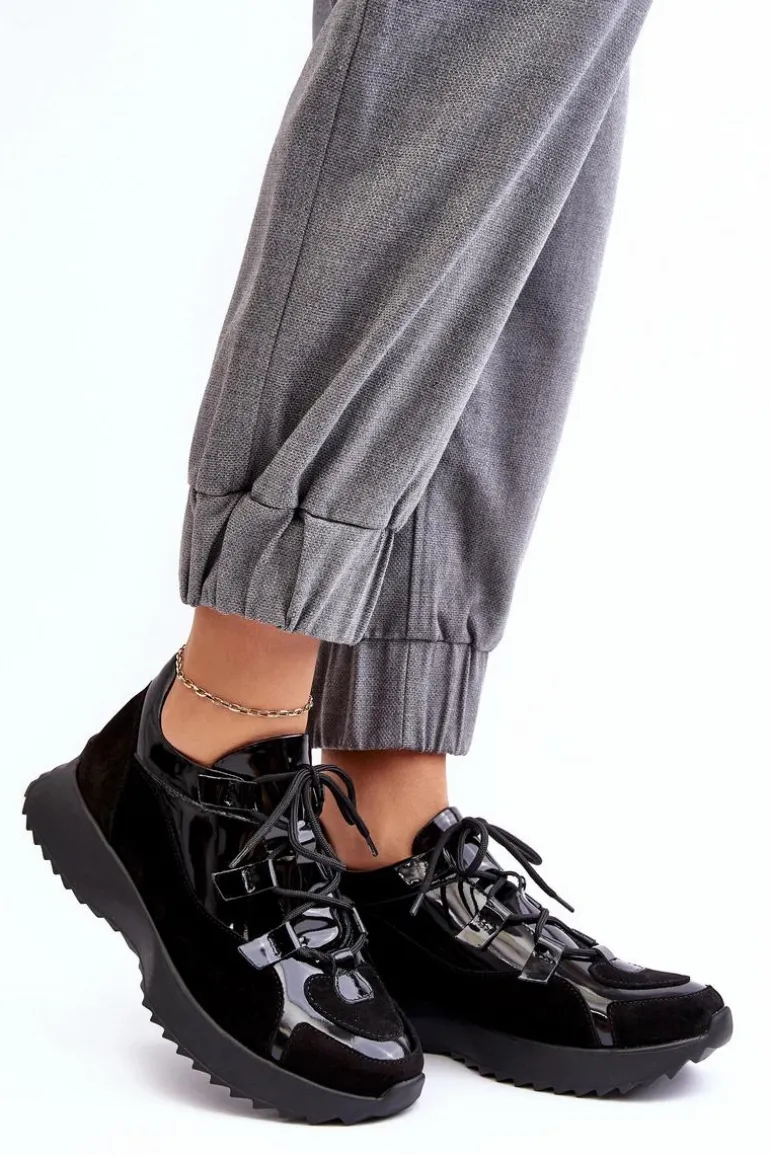 Skórzane Lakierowane Buty Sportowe Damskie M01/2 Zazoo Czarne