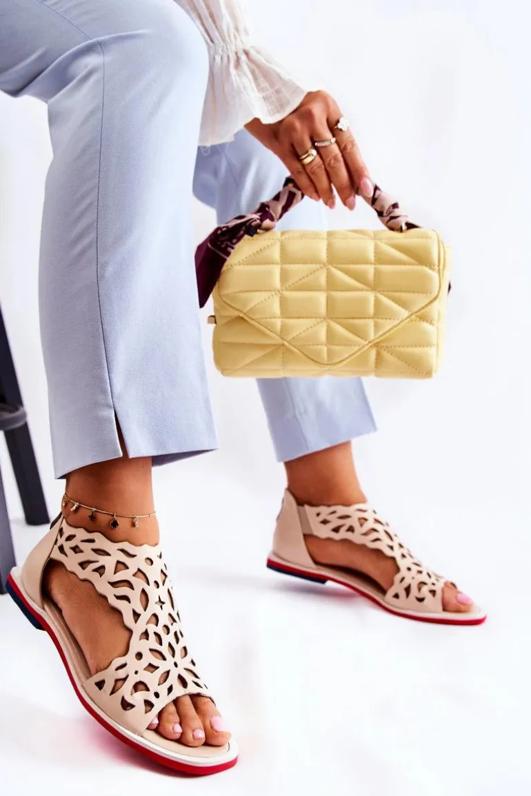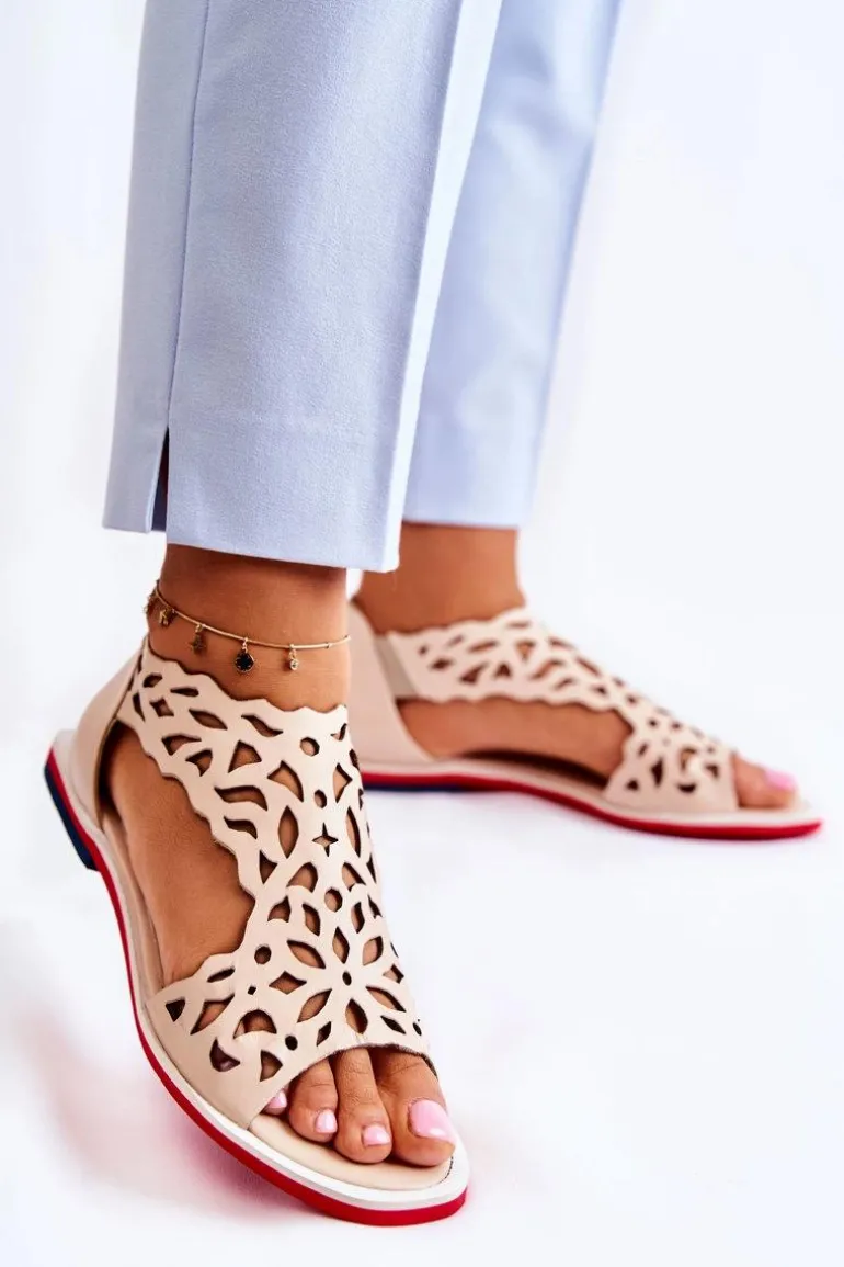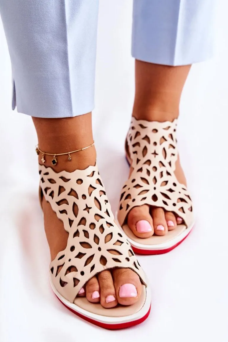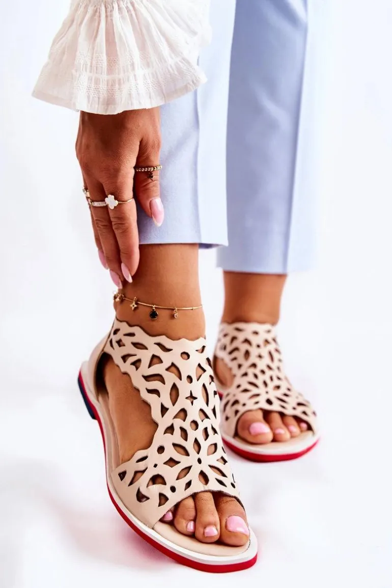 Skórzane Lekkie Ażurowe Sandały Beżowe Alima