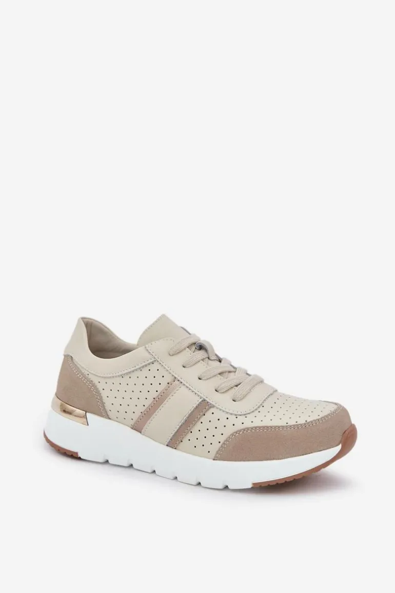 Sneakersy damskie z naturalnej skóry to wygodna i stylowa opcja na co dzień. Lekkie i komfortowe, oferują doskonałe dopasowanie do stopy dzięki wkładce Comfort Shoes, która zapewnia wygodę przez cały dzień. Osadzone na platformie, dodają lekkości sylwetce, jednocześnie zapewniając stabilność. Te sneakersy będą świetnym wyborem do casualowych stylizacji, łącząc funkcjonalność z nowoczesnym wyglądem. Przy wyborze rozmiaru prosimy sugerować się tabelą rozmiarów.