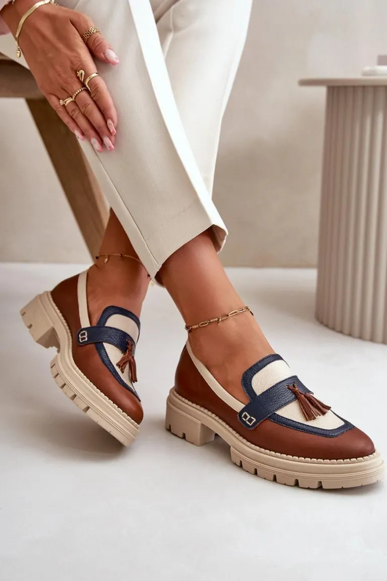 Skórzane mokasyny damskie to eleganckie obuwie, idealne zarówno do codziennych, jak i bardziej formalnych stylizacji. Wykonane z wysokiej jakości skóry, mokasyny te zapewniają komfort i trwałość. Noski są zaokrąglone. Przód mokasynów jest ozdobiony dekoracyjnym paskiem, który dodatkowo wzbogacony jest frędzelkami, dodającymi całości subtelnego, lecz wyrazistego charakteru. Ich design jest nie tylko stylowy, ale również funkcjonalny – skóra naturalna zapewnia oddychalność, a miękka, skórzana wkładka dba o komfort noszenia przez cały dzień. Mokasyny te stanowią doskonały wybór dla kobiet ceniących połączenie klasyki z modnym akcentem. Przy wyborze rozmiaru prosimy sugerować się tabelą rozmiarów.