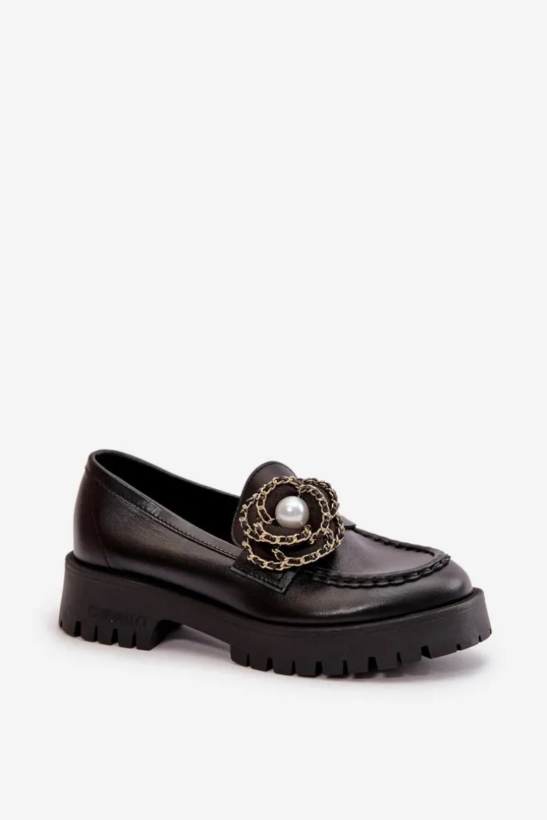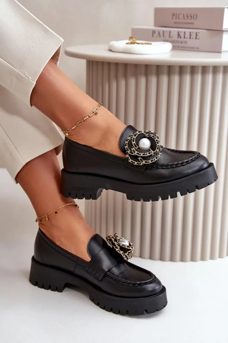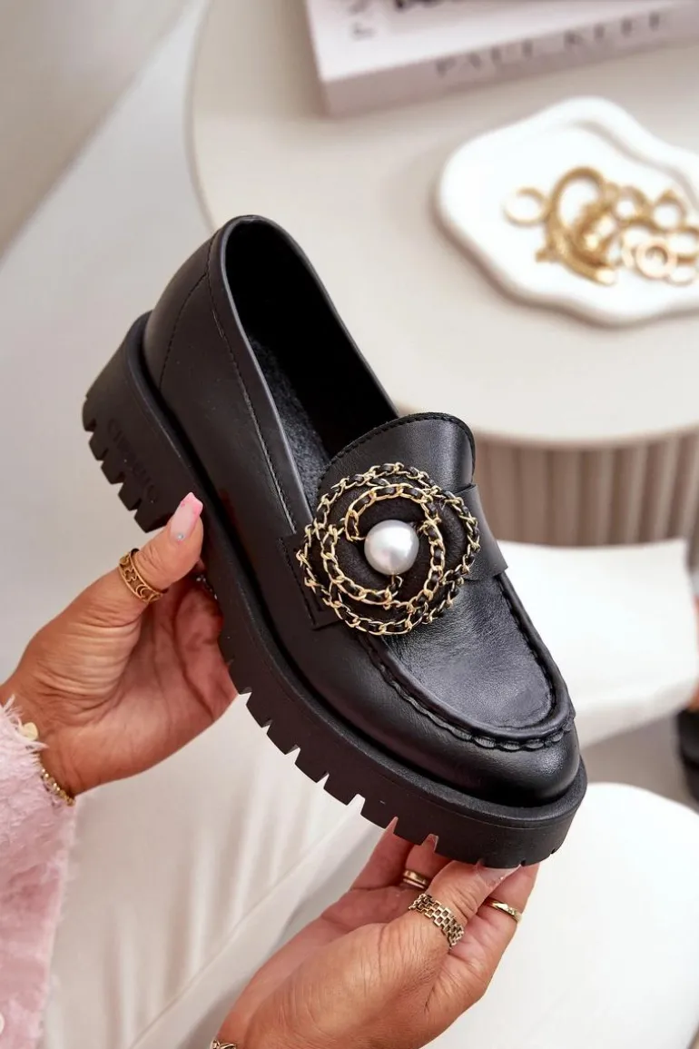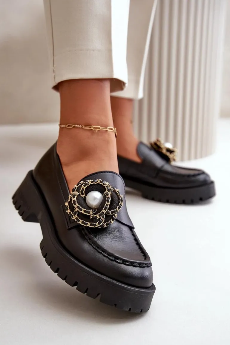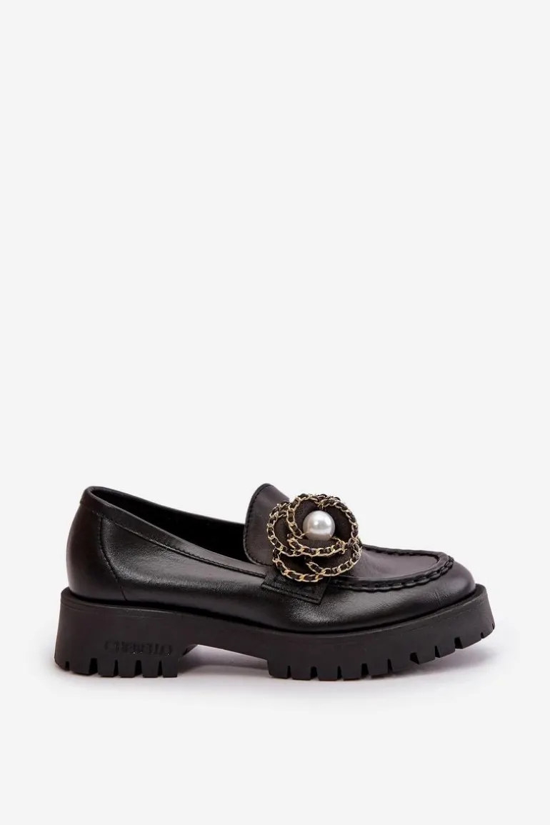 Śliczne damskie mokasyny wykonano z wysokiej jakości skóry naturalnej, gwarantując trwałość i komfort noszenia. Płaski obcas i platforma zapewniają stabilność i wygodę. Skórzana wkładka dodatkowo podnosi komfort noszenia. Ozdobny kwiatek na pasku nadaje subtelny akcent. Model ten doskonale uzupełni wiele stylizacji! Przy wyborze rozmiaru prosimy sugerować się tabelą rozmiarów.