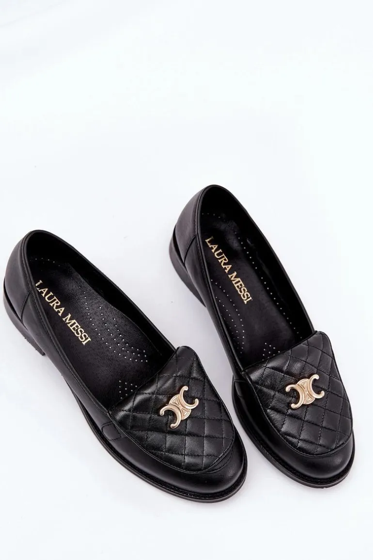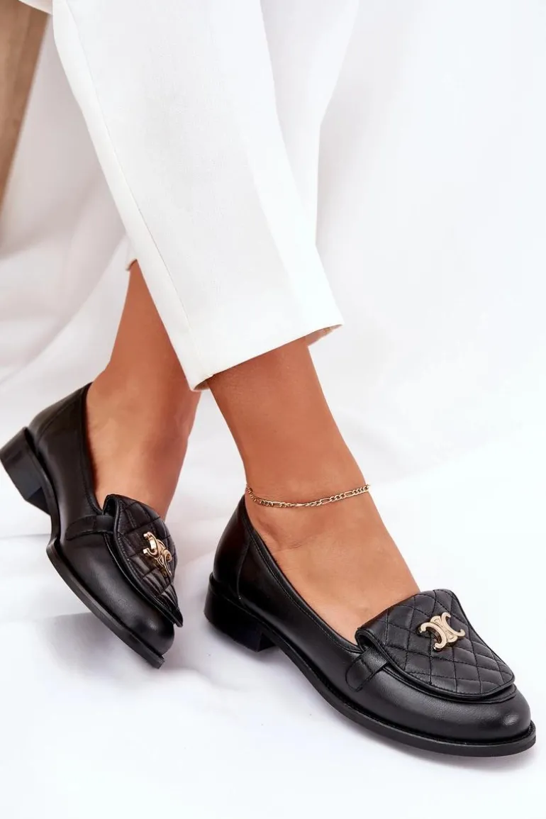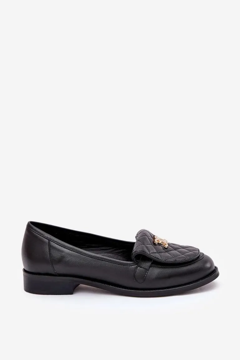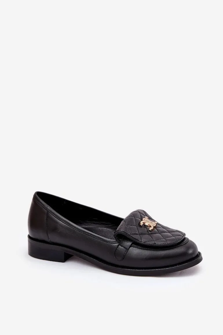 Eleganckie mokasyny damskie wykonane z wysokiej jakości naturalnej skóry. Przód butów zdobią subtelne przeszycia oraz złoty element, który dodaje im szyku i wyjątkowego charakteru. Zaokrąglone noski nadają modelowi klasycznego wyglądu, a skórzana wkładka zapewnia komfort noszenia przez cały dzień. Idealne zarówno do codziennych, jak i bardziej formalnych stylizacji – must-have w garderobie każdej kobiety! Przy wyborze rozmiaru prosimy sugerować się tabelą rozmiarów.