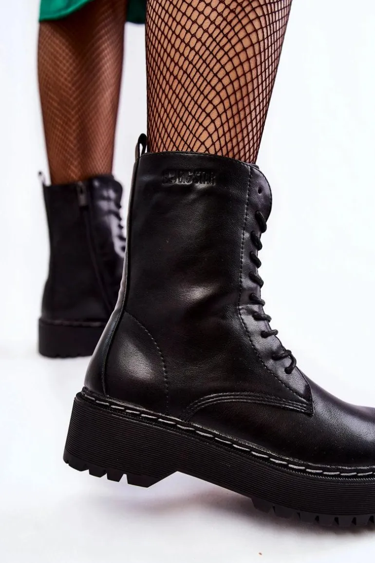 Botki Big Star wykonane są z wierzchu z eko skóry. Środek butów został ocieplony miłym w dotyku kocem obuwniczym. Masywna podeszwa sprawia, że botki są stabilne podczas użytkowania na nierównej nawierzchni. Model z suwakiem oraz sznurowaniem z przodu. Koniecznie musisz je mieć! Sprawdź całą kolekcję tej marki! Przy wyborze rozmiaru prosimy sugerować się tabelą rozmiarów.