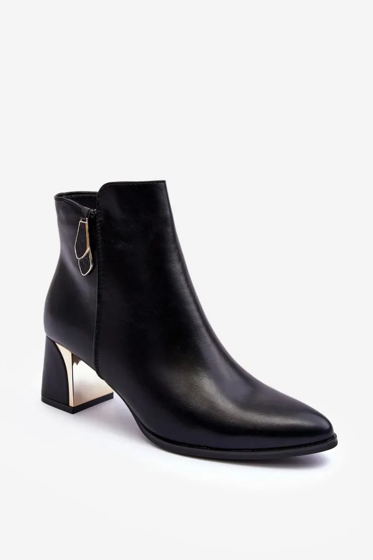 Botki damskie osadzone na obcasie w postaci słupka. Cholewka zapinana na suwak. Wykonane z eko skóry. Środek ocieplony kocem obuwniczym. Noski w szpic, usztywniony zapiętek. Idealne do wielu jesienno-zimowych stylizacji! Koniecznie sprawdź także pozostałe modele botków dostępnych w naszej ofercie. Przy wyborze rozmiaru prosimy sugerować się tabelą rozmiarów.