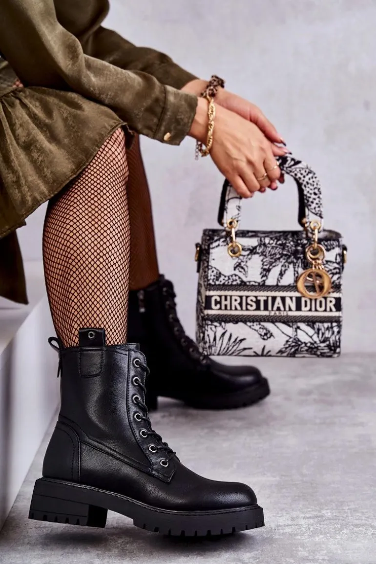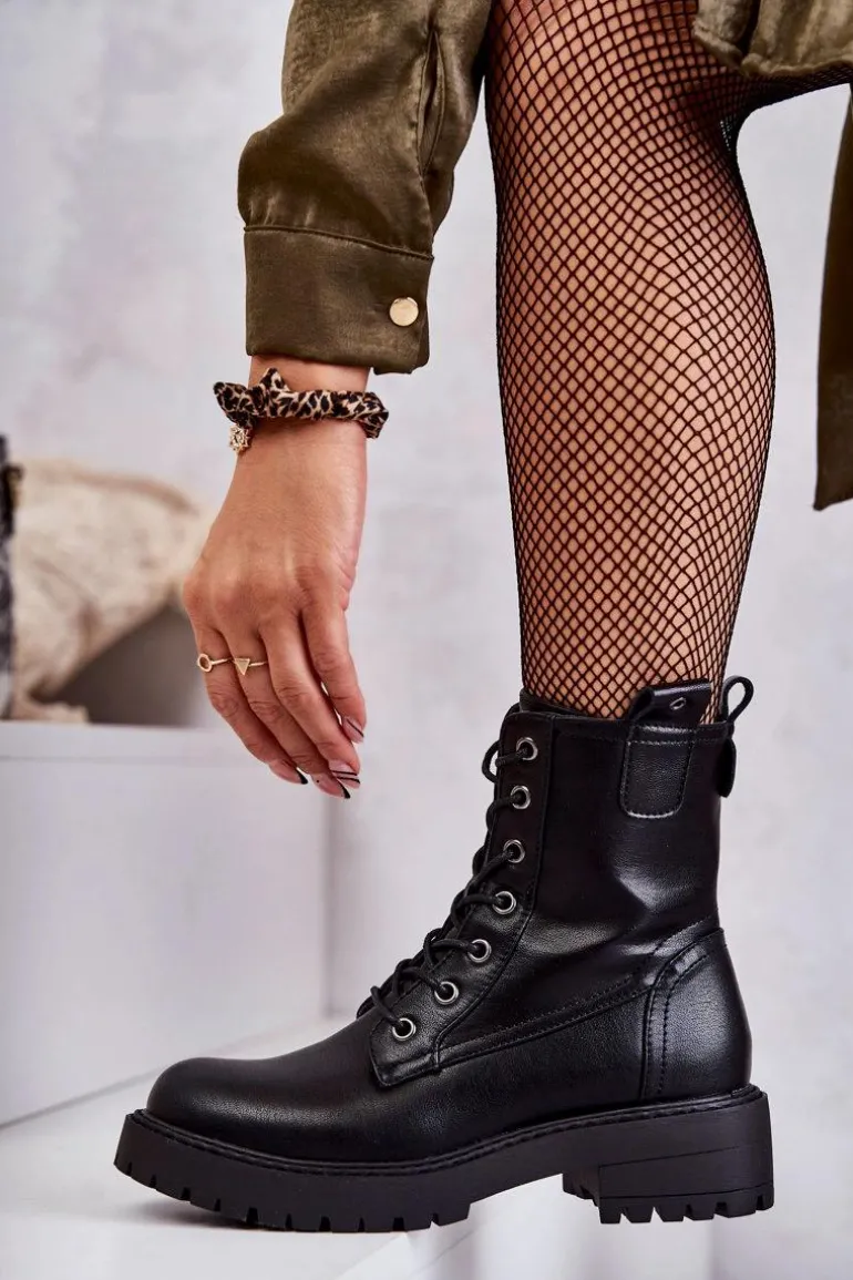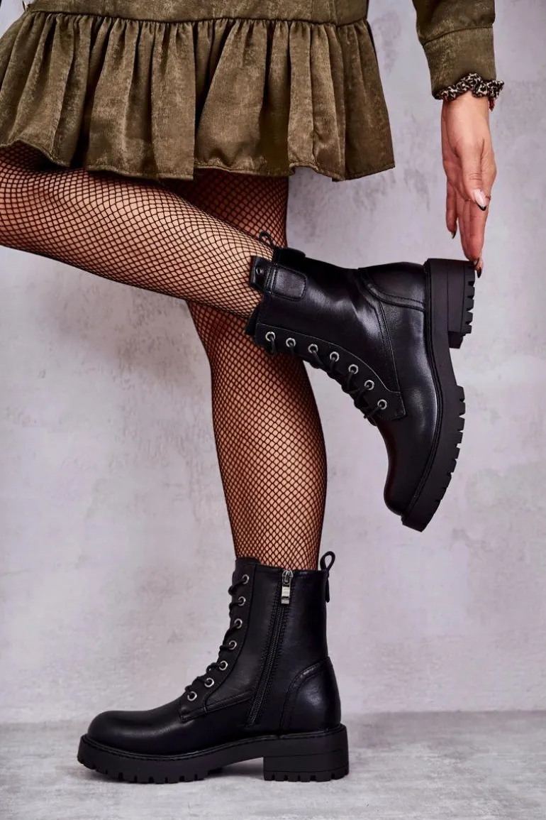 Botki damskie o klasycznym fasonie świetnie sprawdzą się na jesienne, chłodne dni. Posiadają wewnątrz ocieplenie w postaci koca obuwniczego. Osadzone na płaskim, stabilnym obcasie ze żłobieniami. Dodatkowo posiadają usztywniany zapiętek. Model z suwakiem na boku cholewki oraz sznurowaniem. Idealny model do pracy czy szkoły. Przy wyborze rozmiaru prosimy sugerować się tabelą rozmiarów.
