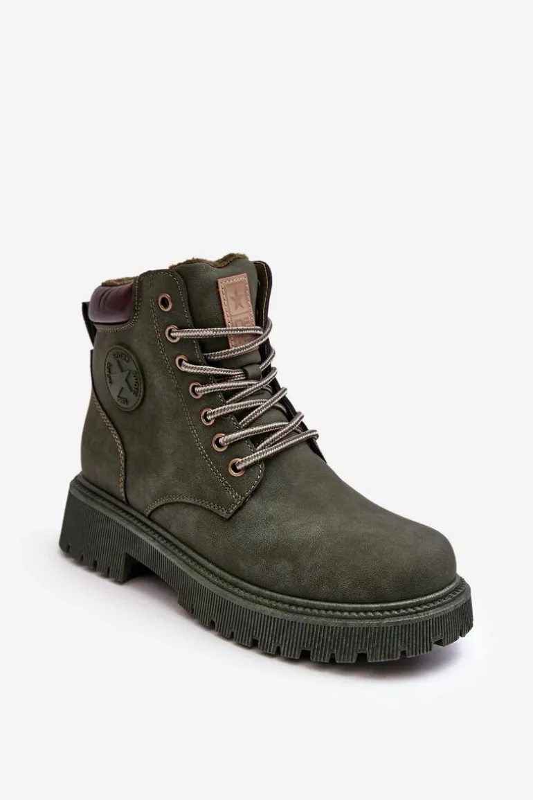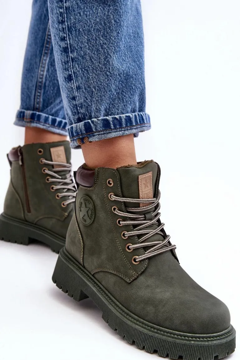 Botki w stylu traperów idealnie sprawdzą się na chłodniejsze dni! Zostały wykonane z eko skóry. Posiadają klasyczne sznurowanie oraz suwak z boku cholewki. Model z dodatkowo usztywnianym zapiętkiem. Ocieplone wewnątrz miłym w dotyku kocem obuwniczym. Trapery osadzono na delikatnej platformie oraz płaskim obcasie. Przy wyborze rozmiaru prosimy sugerować się tabelą rozmiarów.