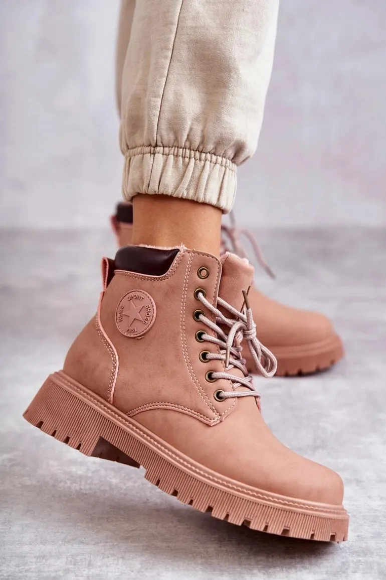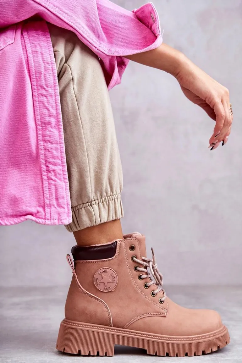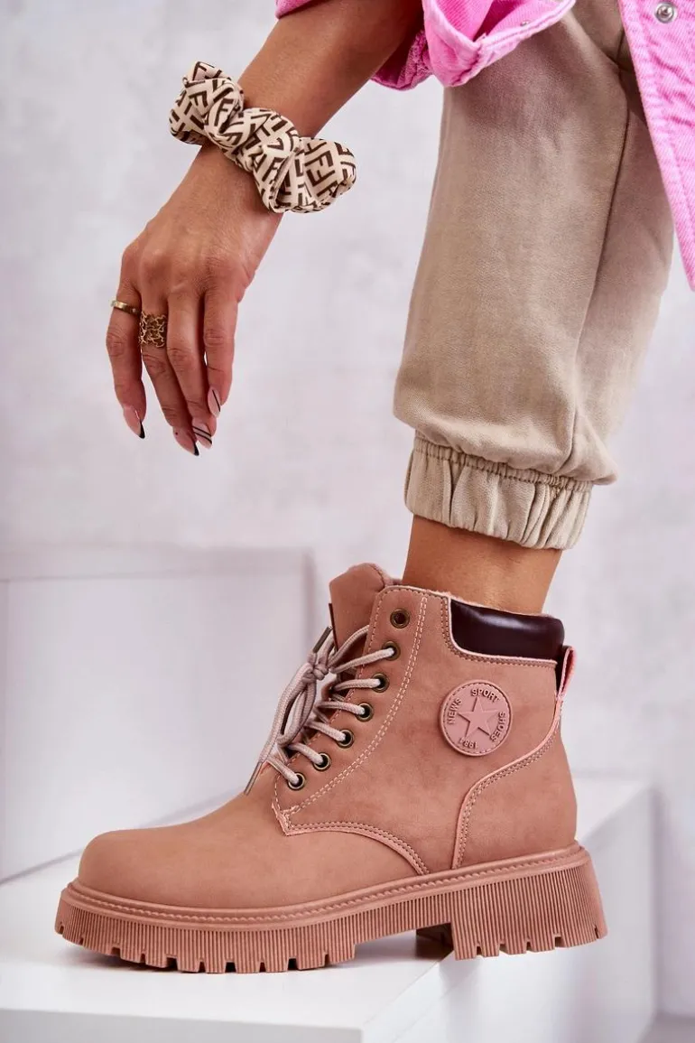 Botki w stylu traperów idealnie sprawdzą się na chłodniejsze dni! Zostały wykonane z eko skóry. Posiadają klasyczne sznurowanie oraz suwak z boku cholewki. Model z dodatkowo usztywnianym zapiętkiem. Ocieplone wewnątrz miłym w dotyku kocem obuwniczym. Trapery osadzono na delikatnej platformie oraz płaskim obcasie. Przy wyborze rozmiaru prosimy sugerować się tabelą rozmiarów.