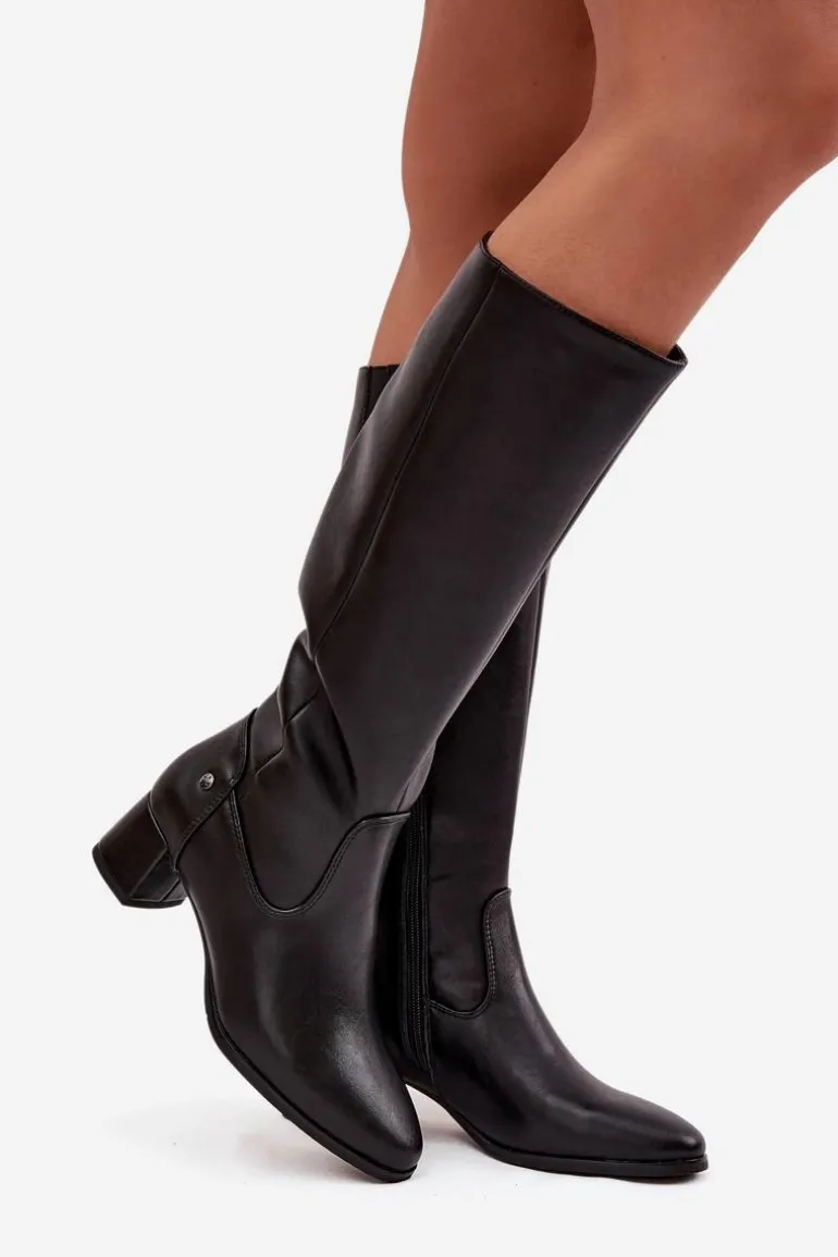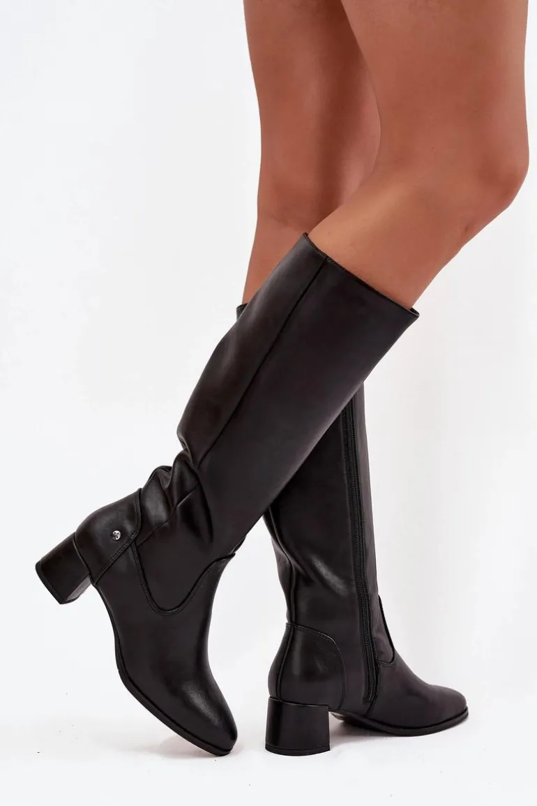 Kozaki damskie marki Maciejka.Wykonane z wysokiej jakości naturalnej skóry, zachwycają trwałością, miękkością i perfekcyjnym wykończeniem, dzięki czemu prezentują się niezwykle stylowo.Model osadzony jest na stabilnym obcasie typu klocek, który zapewnia komfort i pewność kroku, jednocześnie subtelnie wysmuklając sylwetkę. Wnętrze butów zostało ocieplone, co gwarantuje ciepło i wygodę w chłodniejsze dni, czyniąc je idealnym wyborem na jesień i zimę. Zamek z boku ułatwia zakładanie i zdejmowanie obuwia, podnosząc jego funkcjonalność.Świetnie sprawdzą się zarówno w codziennych, jak i bardziej eleganckich stylizacjach – idealne do sukienek, spódnic oraz dopasowanych spodni. To ponadczasowy model, który podkreśli kobiecy styl i doda każdej stylizacji wyrafinowanego charakteru. Przy wyborze rozmiaru prosimy sugerować się tabelą rozmiarów.